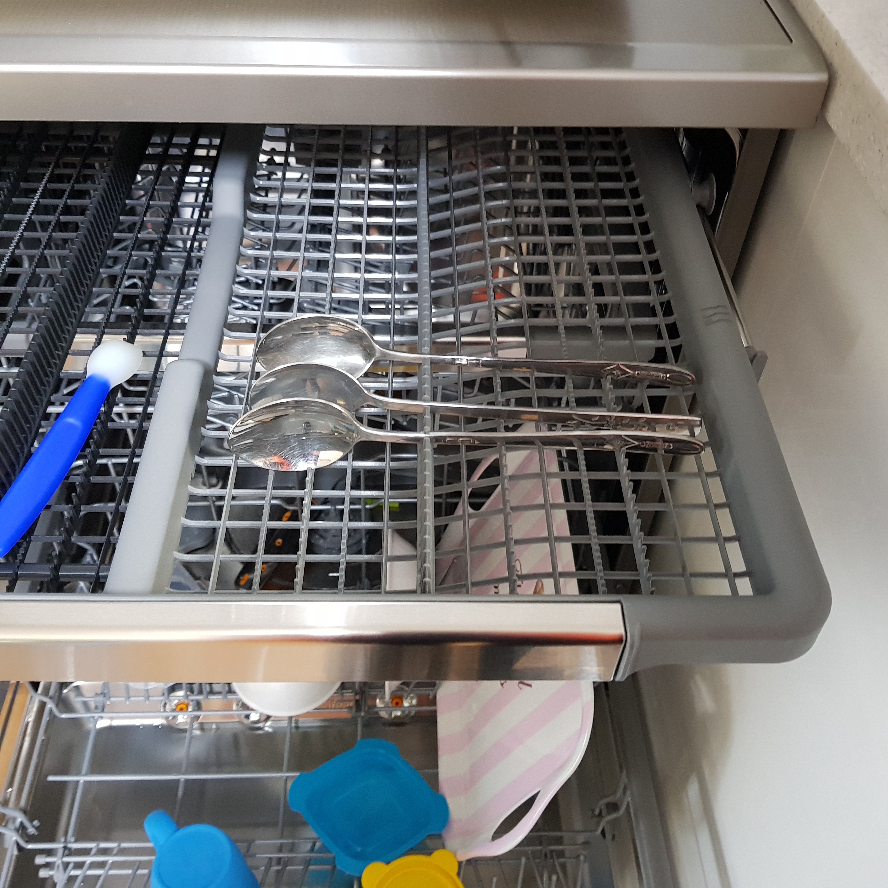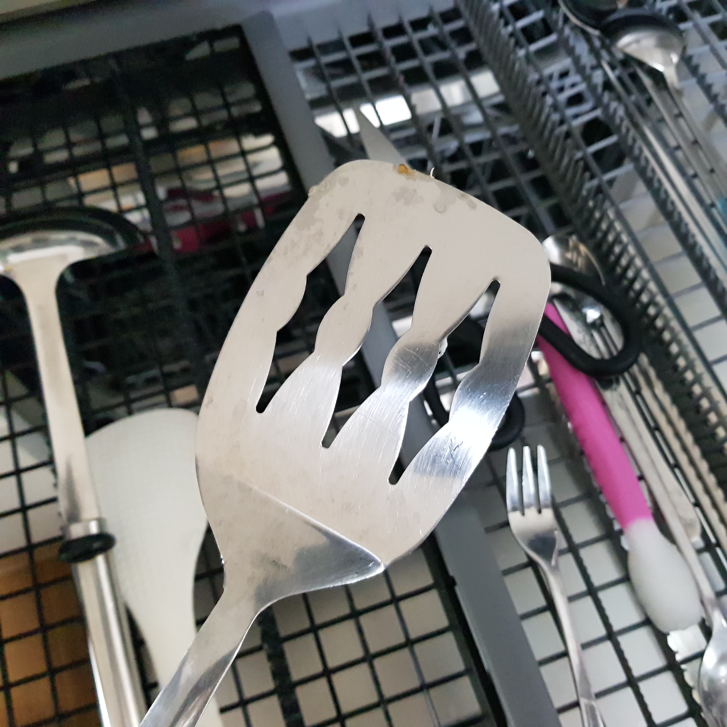 계란이 말라서 눌어붙은 뒤집개는 잘 닦이지 않는다. 이상하게 뒤집개는 잘 안 닦인다. 하지만 걱정하지 않아도 된다. 식기세척기엔 불림 기능도 있고 이제 말라서 눌어붙도록 미루지 않고 바로 세척기에 넣으면 되니깐!