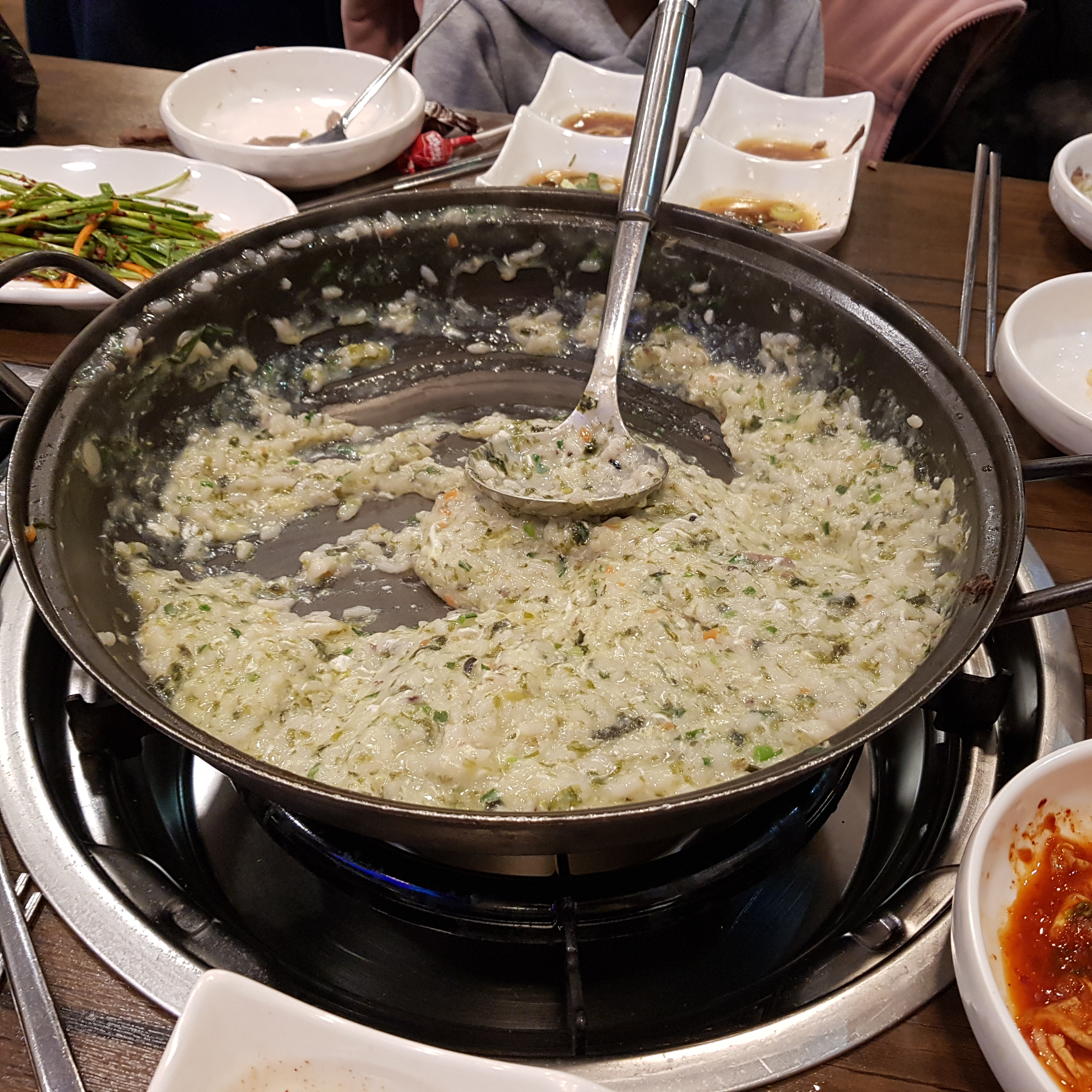 버섯소고기수육전골을 다 먹으면 죽을 끓여 먹을 수 있다. 죽 너무 좋다. 원래도 죽을 좋아하지만 너무 맛있었다. 깍두기와 함께 먹으면 더 맛있다. 다음엔 죽을 더 많이 시켜야지! 지금도 생각하니 군침이 뚝뚝뚝...