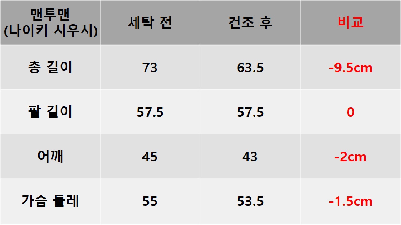 건조 후 사이즈