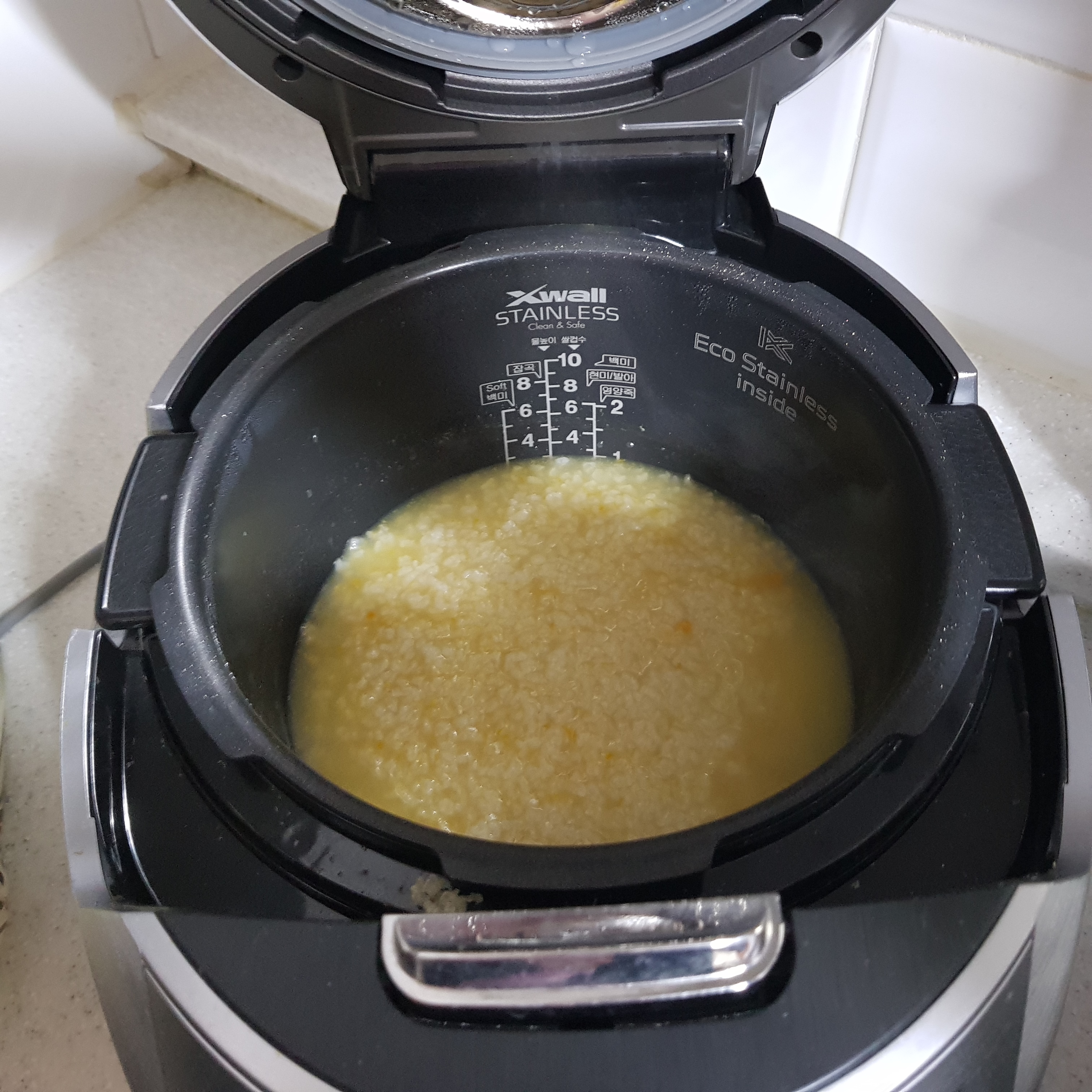 93분이 지났다. 영양죽 모드는 증기 배출이 안된다. 처음 알았다. 시간은 오래 걸리지만 계속 젖지 않아도 되고 쌀도 미리 불리지 않아도 되고, 믹서기에 분쇄하지 않아도 된다. 혹시나 덜 익지 않았는지 걱정하지 않아도 된다. 그리고 밥알이 푹 퍼져서 혀와 입천장으로 충분히 부서진다.