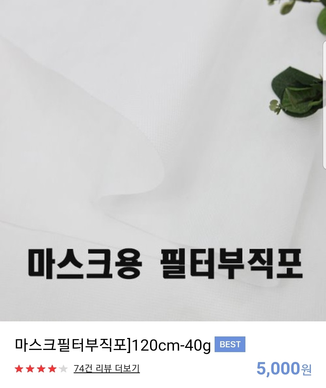 위의 사진은 내가 구매한 마스크용 필터 부직포다. 겉감으로 사용하려고 구매했다.