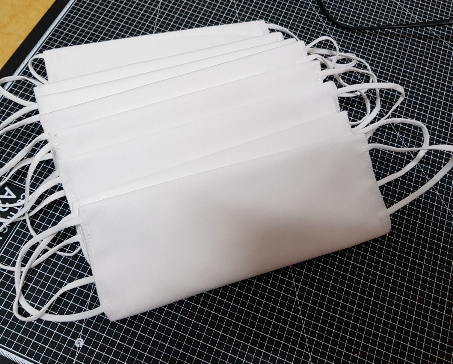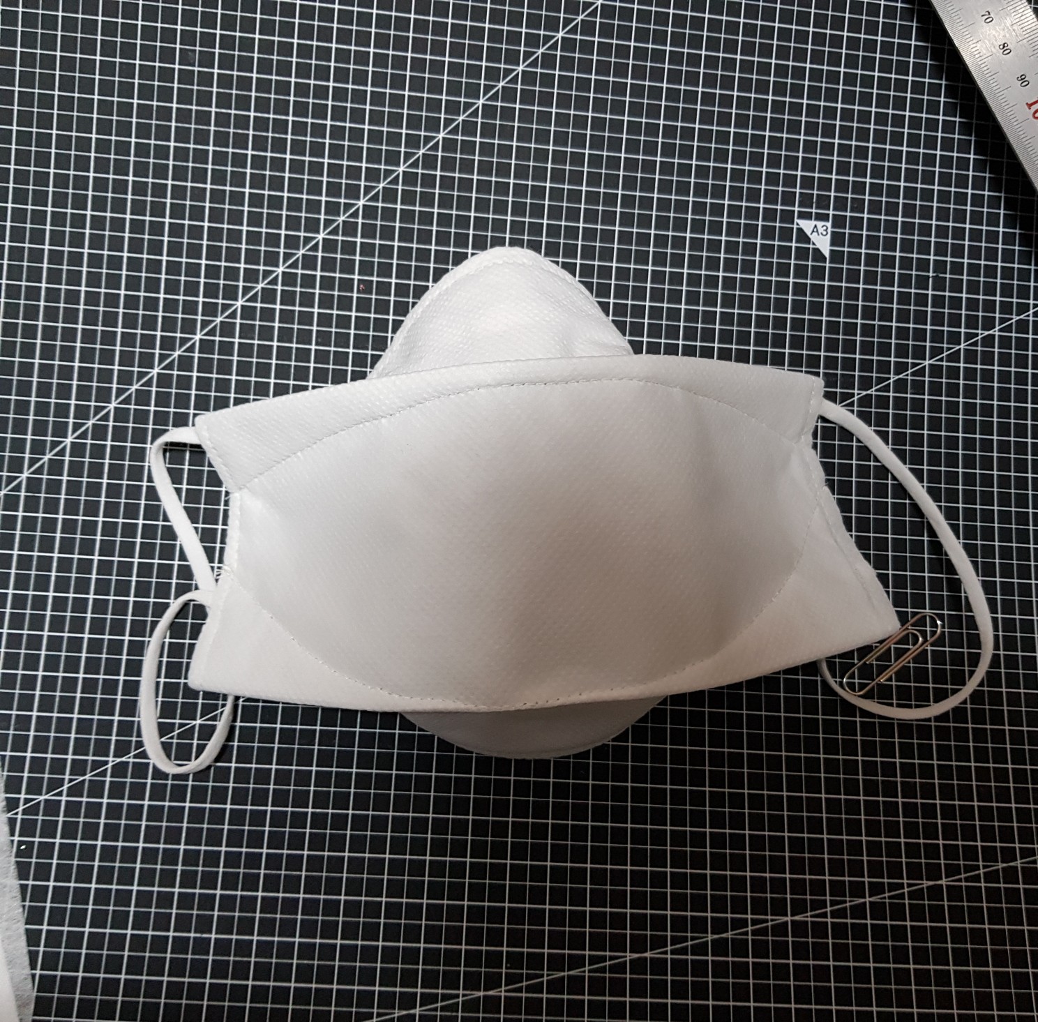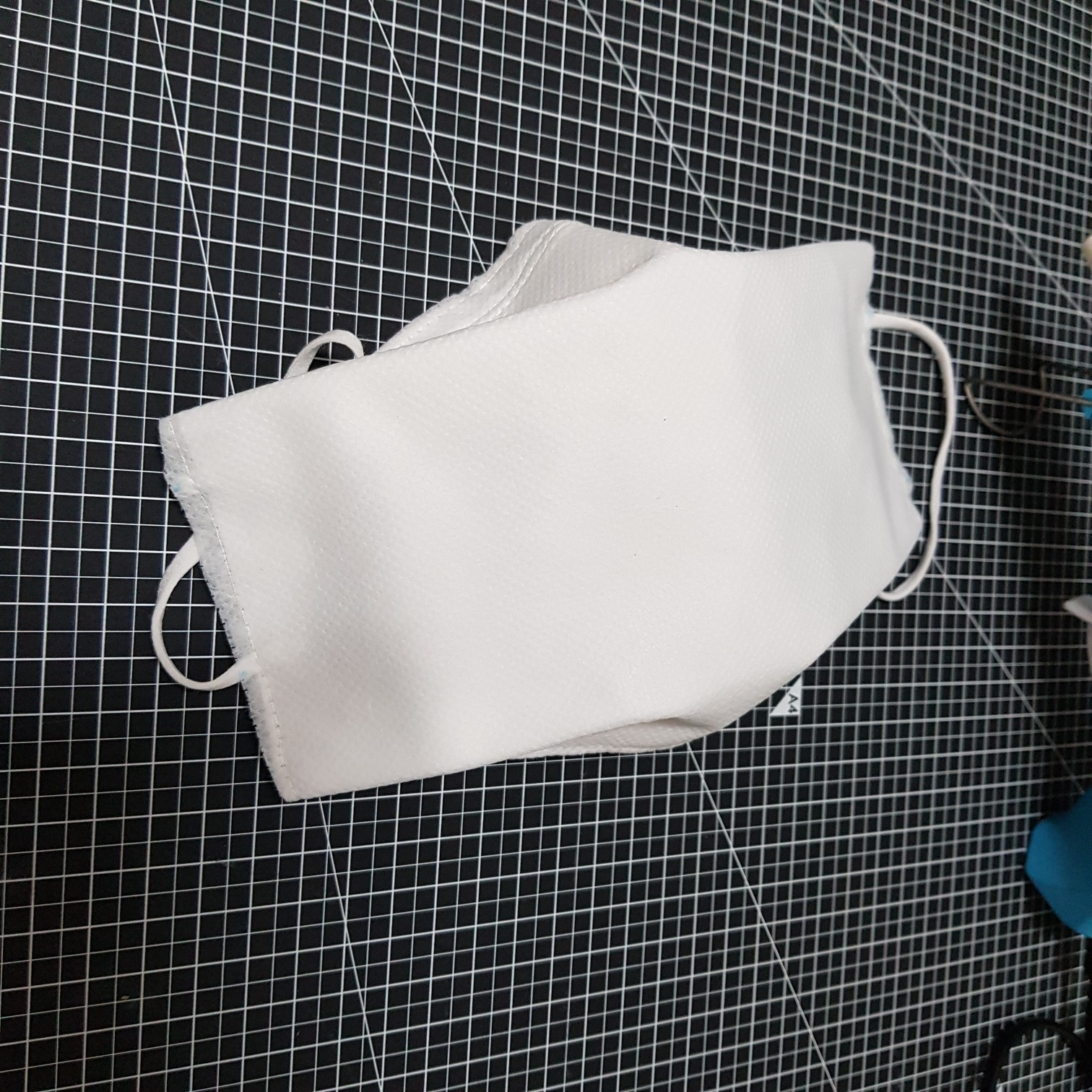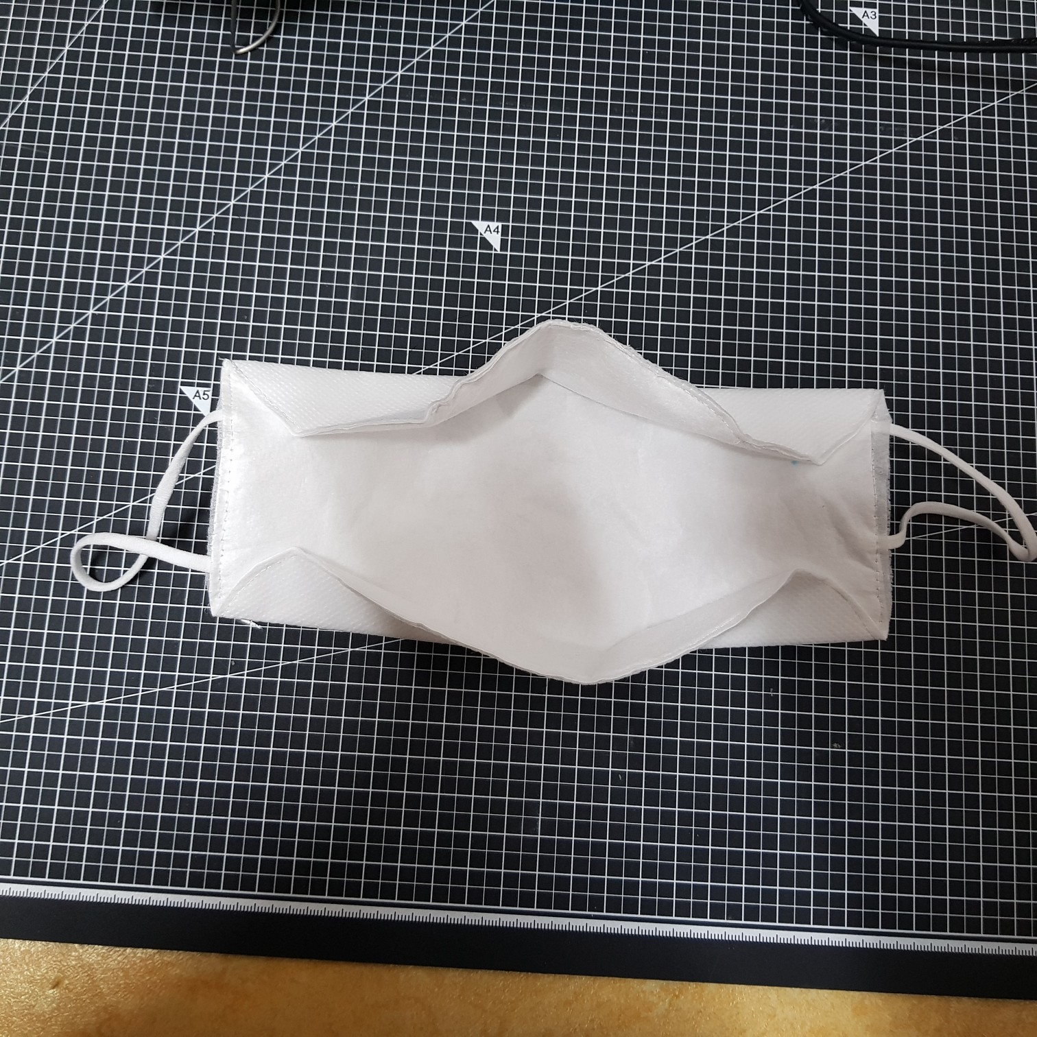 필터 손상을 최소화하기 위해 시접이 겉에서 보이도록 만들면 위의 사진과 같이 된다. 시접이 안으로 들어가게 하려면 테두리를 재봉하고 뒤집어야 하는데 뒤집는 과정에서 멜트블로운 필터가 많이 구겨진다. 그래서 뒤집는 과정을 생략하려고 시접을 겉에 놔뒀다. 어차피 부직포는 올 풀림이 없어서 테두리는 예쁘게 가위로 오려주면 더 깔끔해진다.