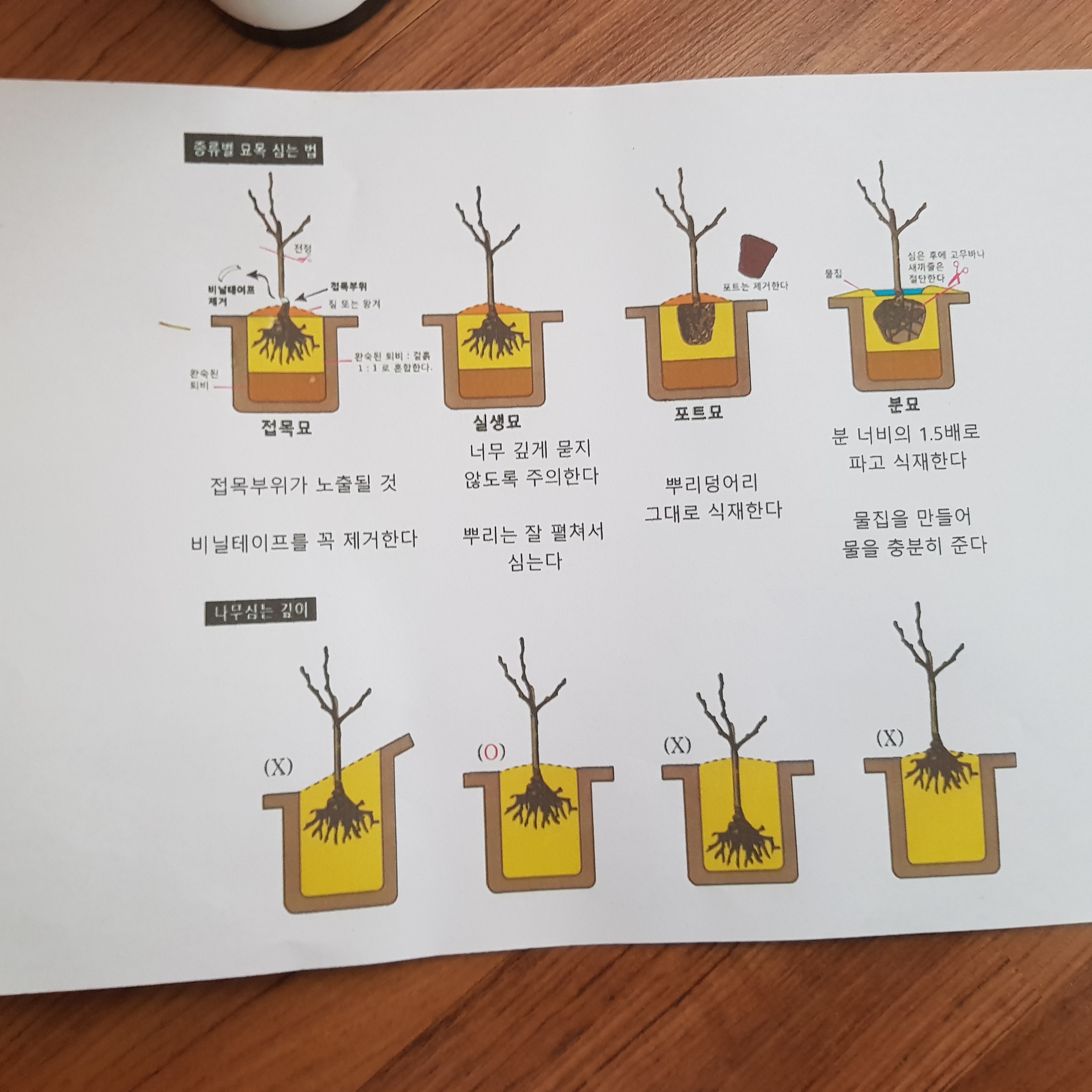 묘목 판매자는 친절하게 묘목 심는 법도 함께 같이 배송해 줬다. 하지만 봐도 모르겠다. 내가 구매한 샤인머스캣 묘목이 접목묘일까 실생묘일까?