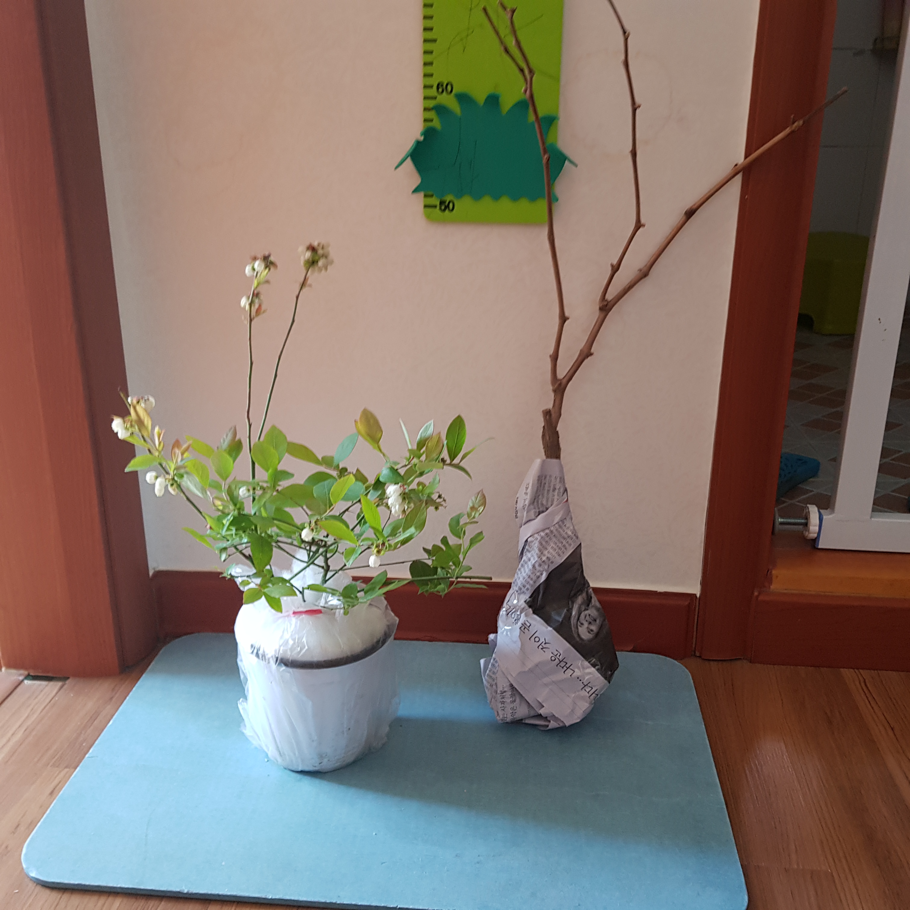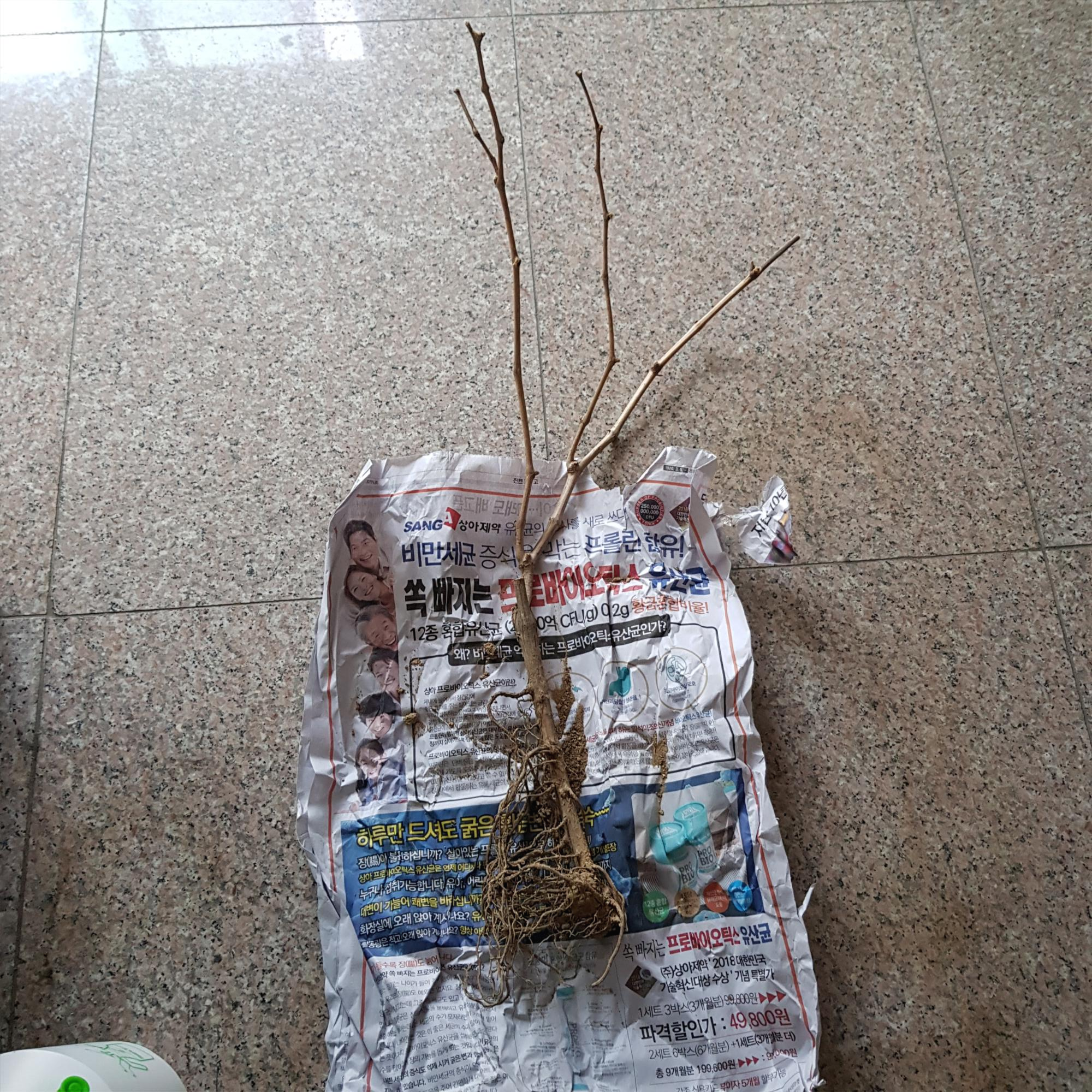 4월 8일 샤인머스캣 청포도 묘목이 집으로 배송되었다. 샤인머스캣 묘목과 블루베리 묘목을 같이 샀다. 블루베리 얘기는 다음으로 미루고 여기선 샤인머스캣에 집중해야겠다. 위에 사진에서 왼쪽에 있는 나무 막대기로 보이는 것이 샤인머스캣 묘목이다.