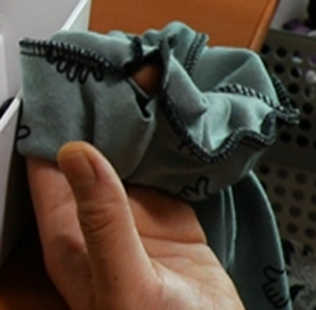 고무줄 넣는 사진이 또 없다. 흠.... 고무줄을 넣고 고무줄이 들어간 구멍을 재봉해서 마무리한다.