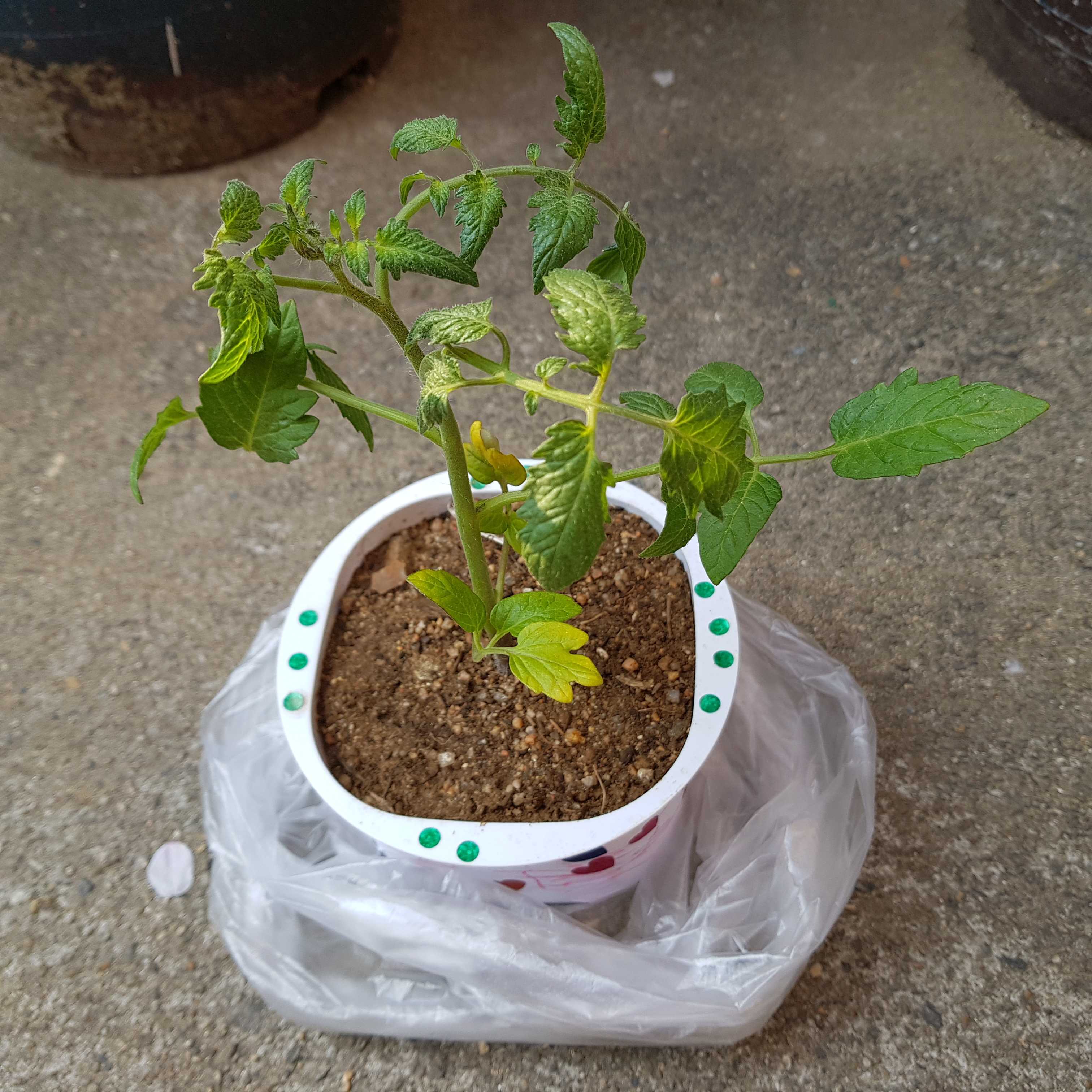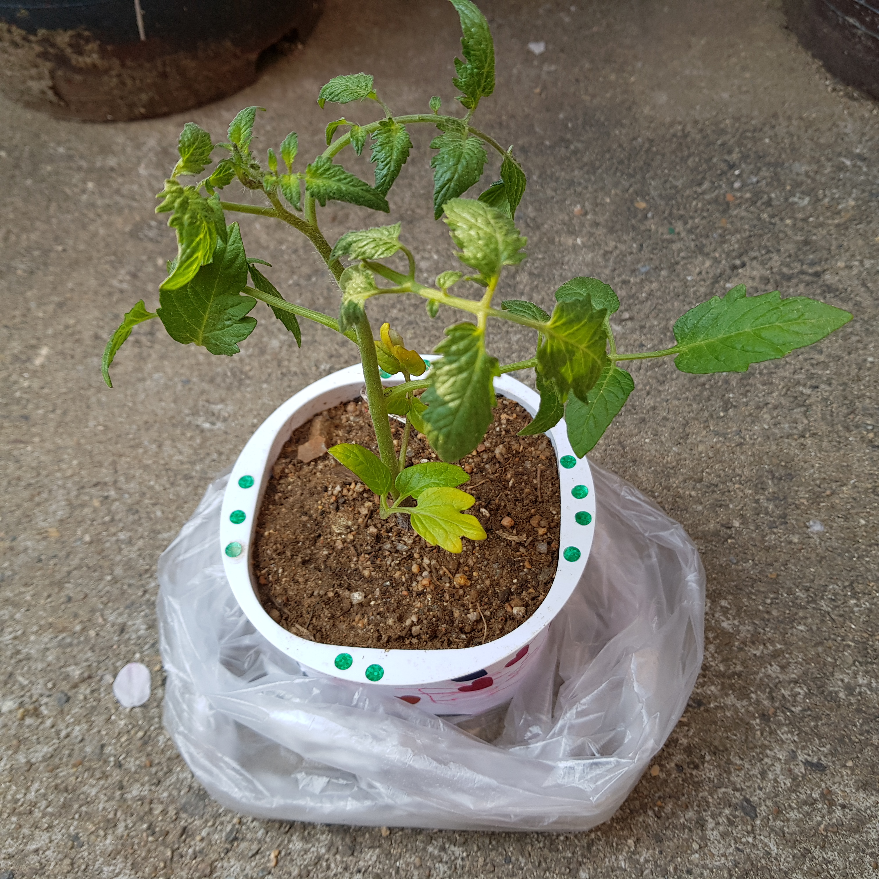 꽃을 보니 방울토마토가 5~6개쯤 달릴 것 같다. 큰 기대는 하지 말아야지. 그래도 처음보다 많이 자란 모습니다.
