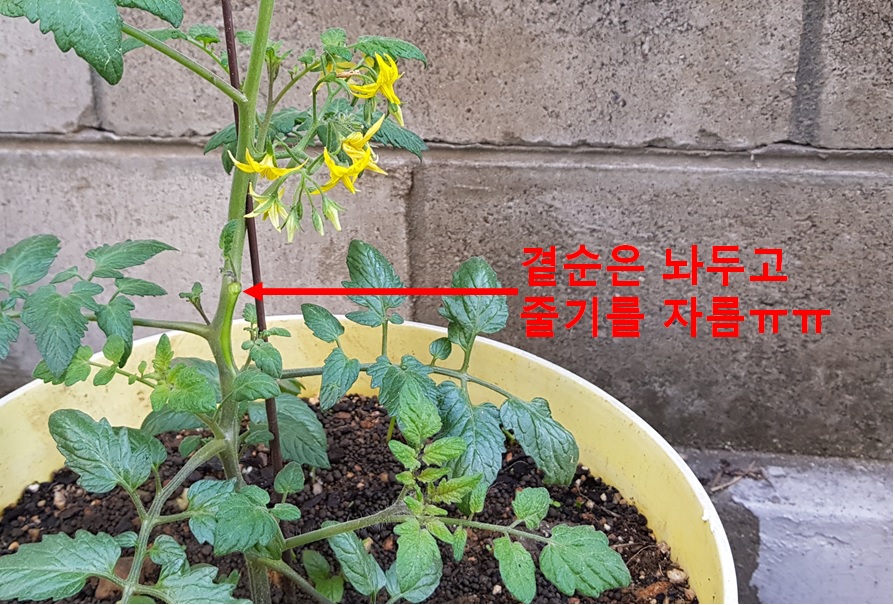 방울토마토 키우기의 최대 관건은 곁순 따기다. 꽃이나 열매가 지나치게 많으면 영양분이 부족하여 방울토마토가 건실하게 자랄 수 없게 된다고 한다. 곁순 따기, 순지르기, 곁눈 따기, 순따주기 무엇이 맞는 말일까? 아무튼 곁순 따기를 해야 방울토마토가 영양 생장을 촉진해 줘서 꽃이나 열매의 품질이 높아진다고 한다. 그래서 곁순이 뭔데? 몰라.