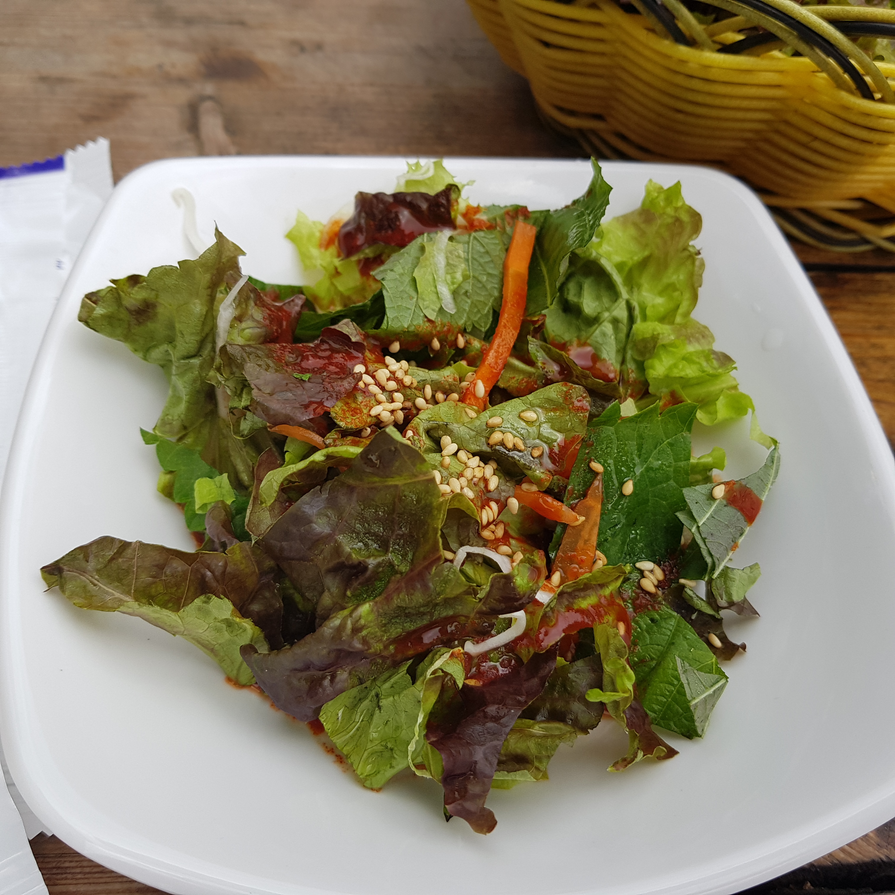 테라스에서도 먹을수 있고 내부에서도 먹을 수 있다. 내부에는 입식, 죄식 테이블이 모두 있다. 어린아이와 함께 먹기는 좌식 테이블이 편하지만 테라스의 운치와 맑은 공기, 경치 때문에 테라스에 자리를 잡았다. 파릇파릇한 자연이 아름답고 뭔가 에너지가 넘치는 느낌이 든다.