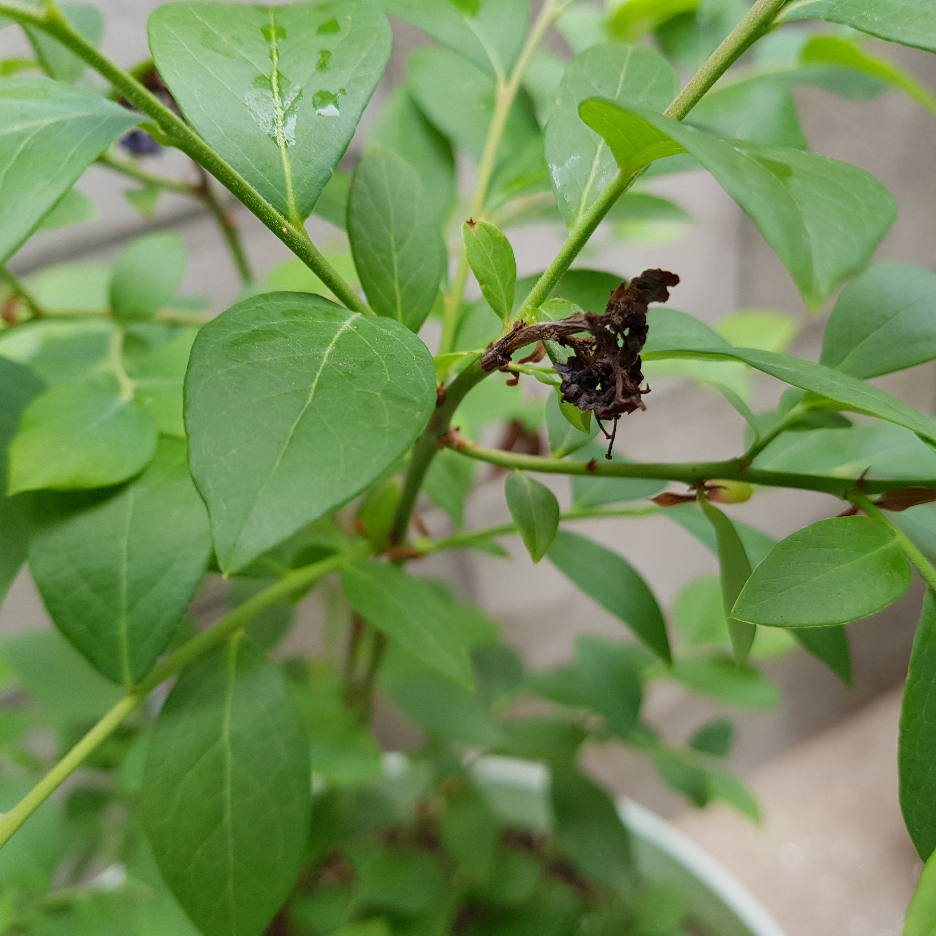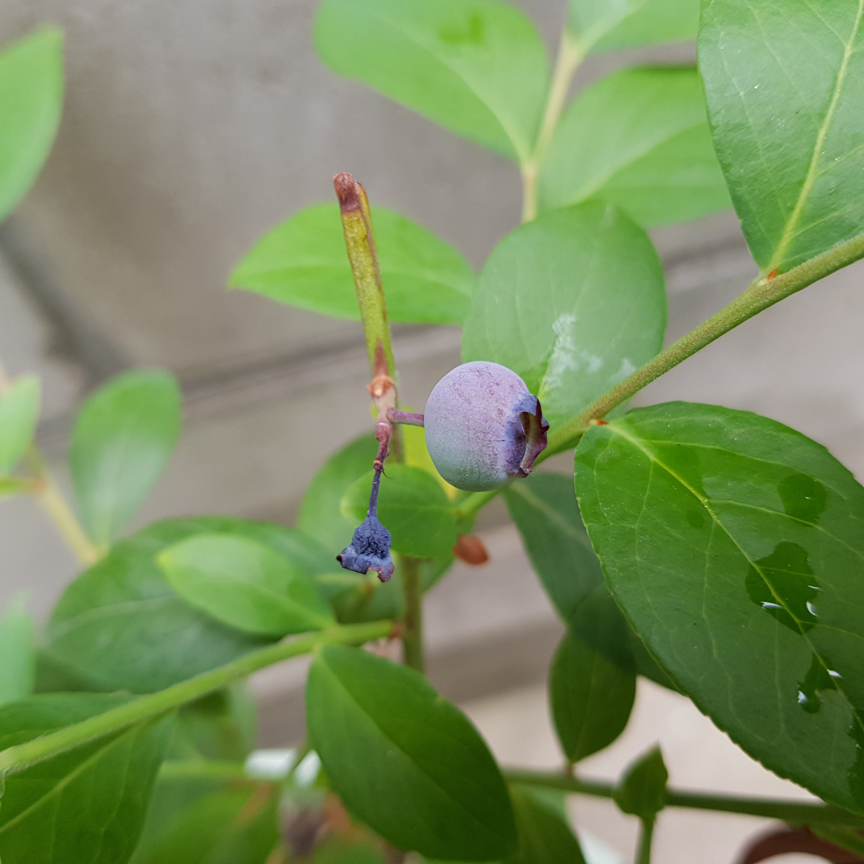 블루베리 열매 맺기, 여물기 5월 중순 꽃이 진 지도 한참이 지났다. 왜 블루베리가 열리지 않는 걸까 생각했다. 그리고 자세히 들여다보는데 블루베리가 달려 있다. 도대체 언제 블루베리 열매를