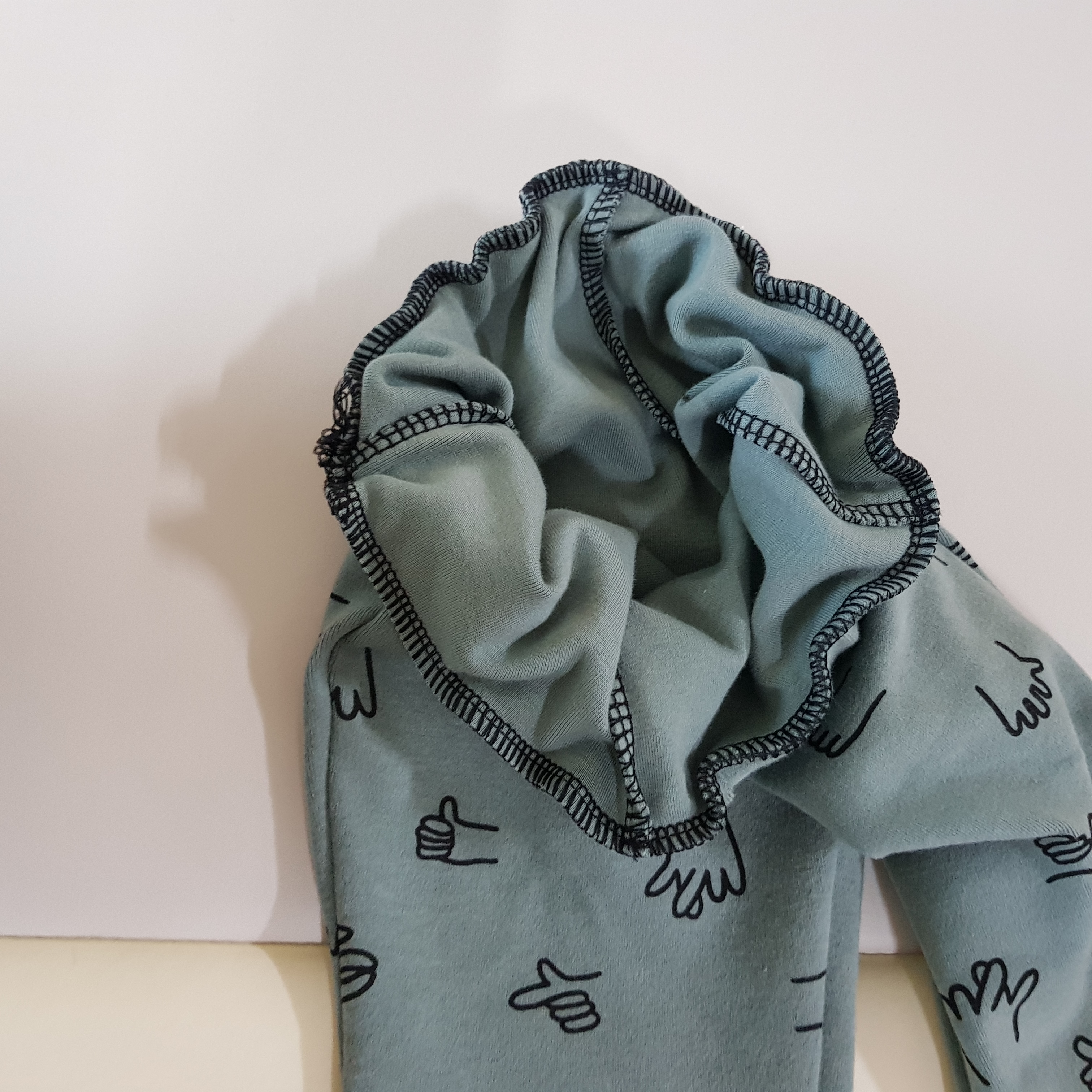 바깥쪽과 안쪽 옆선을 재봉했다면 가랑이 재봉을 위해 가장 만들기 쉬운 바지의 겉면이 마주 보도록 하고 뒤집는다.