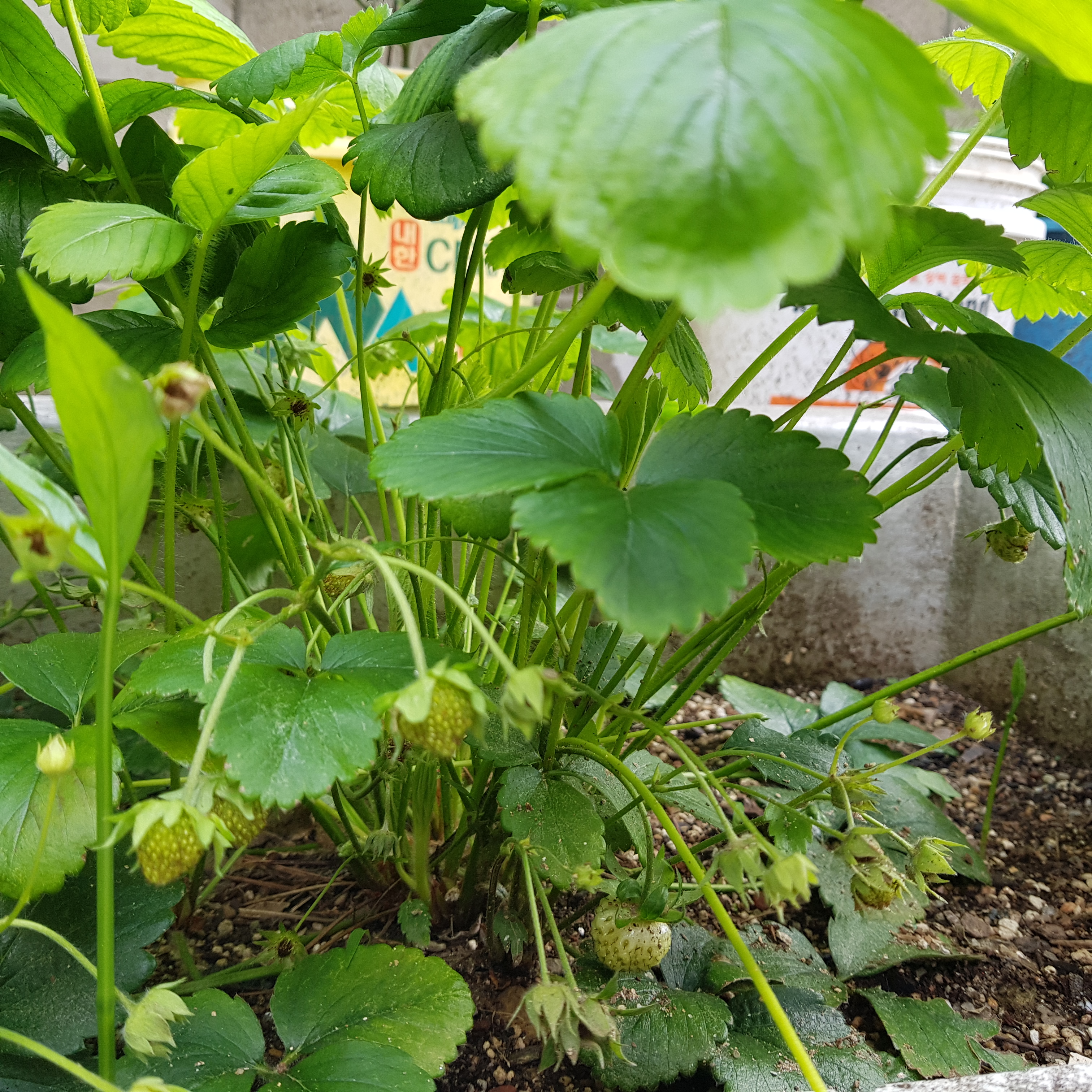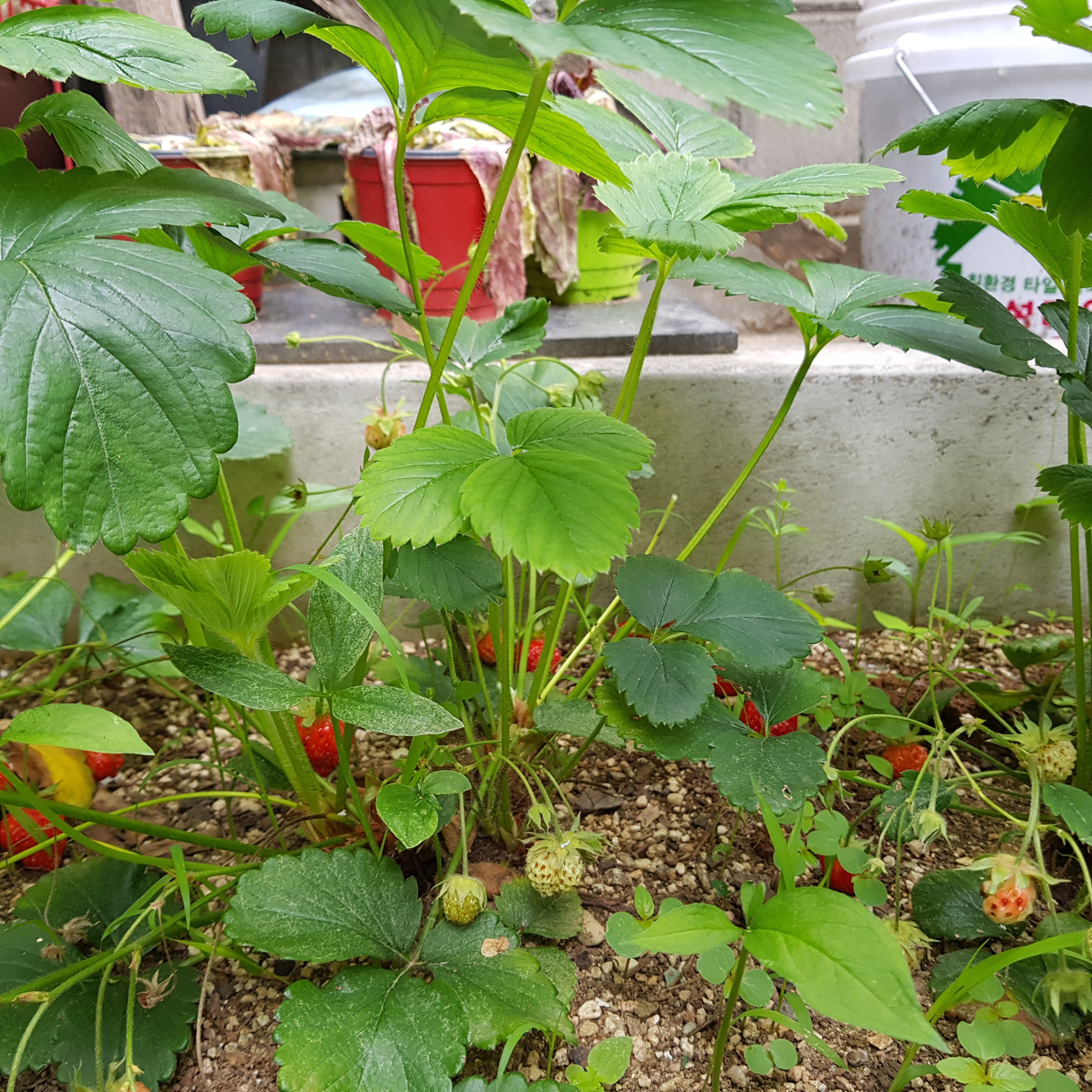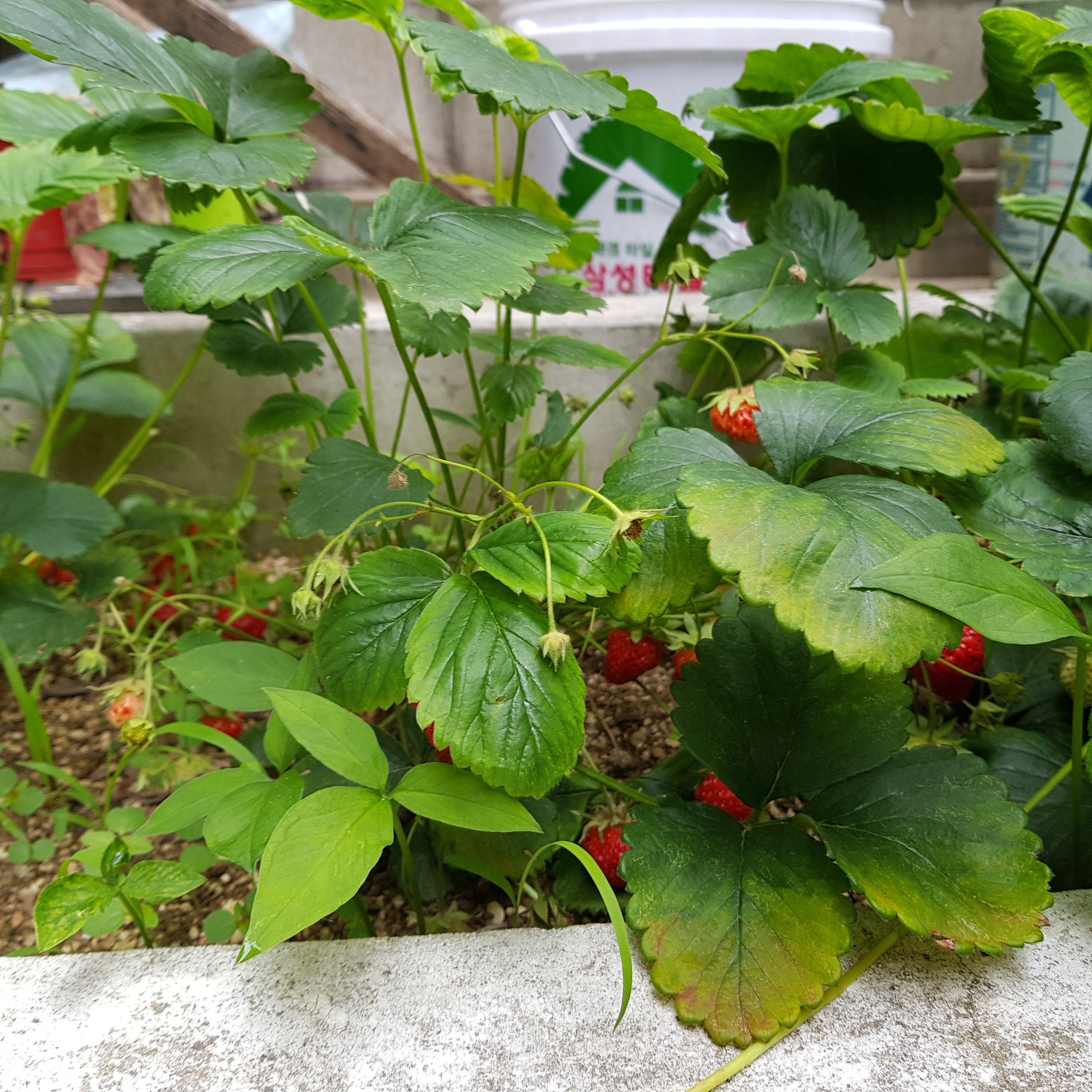 5월 20일. 1년 4개월. 2년생이다. 딸기가 정말 많이 열렸다. 작년에 비해서 훨씬 더 많이 열린 거 같다. 작년에는 한 그루에 4~5개 수확한거 같은데 올해는 한 그루에 몇 개가 열린지 정확히 세기도 어렵다. 많이 컸을때 한 번에 수확해야지. 런너들이 무럭무럭 자라나고 있었다. 더 이상 옮겨 심을 밭도 없어서 그냥 다 뽑아 버렸다. 뽑지 않으면 엉망진창 여기저기 뿌리를 내린다. 그래서 보이는 족족 뽑았다. 작은 화분과 큰 화분에 있는 딸기는 1년생 딸기다. 올해가 첫 번째 수확이다. 기대도 하지 않았던 화분 딸기에서도 딸기가 무럭무럭 자라고 있다.