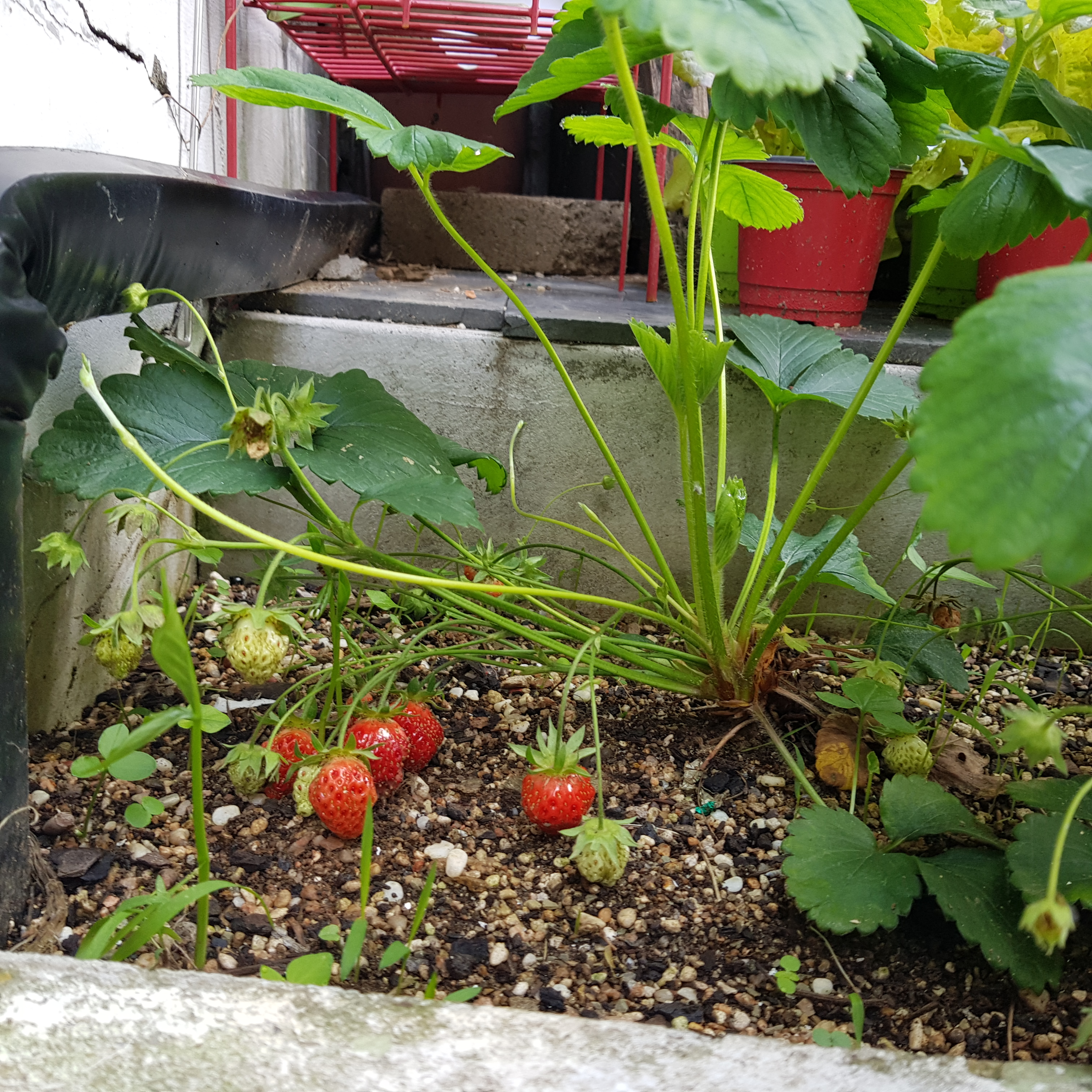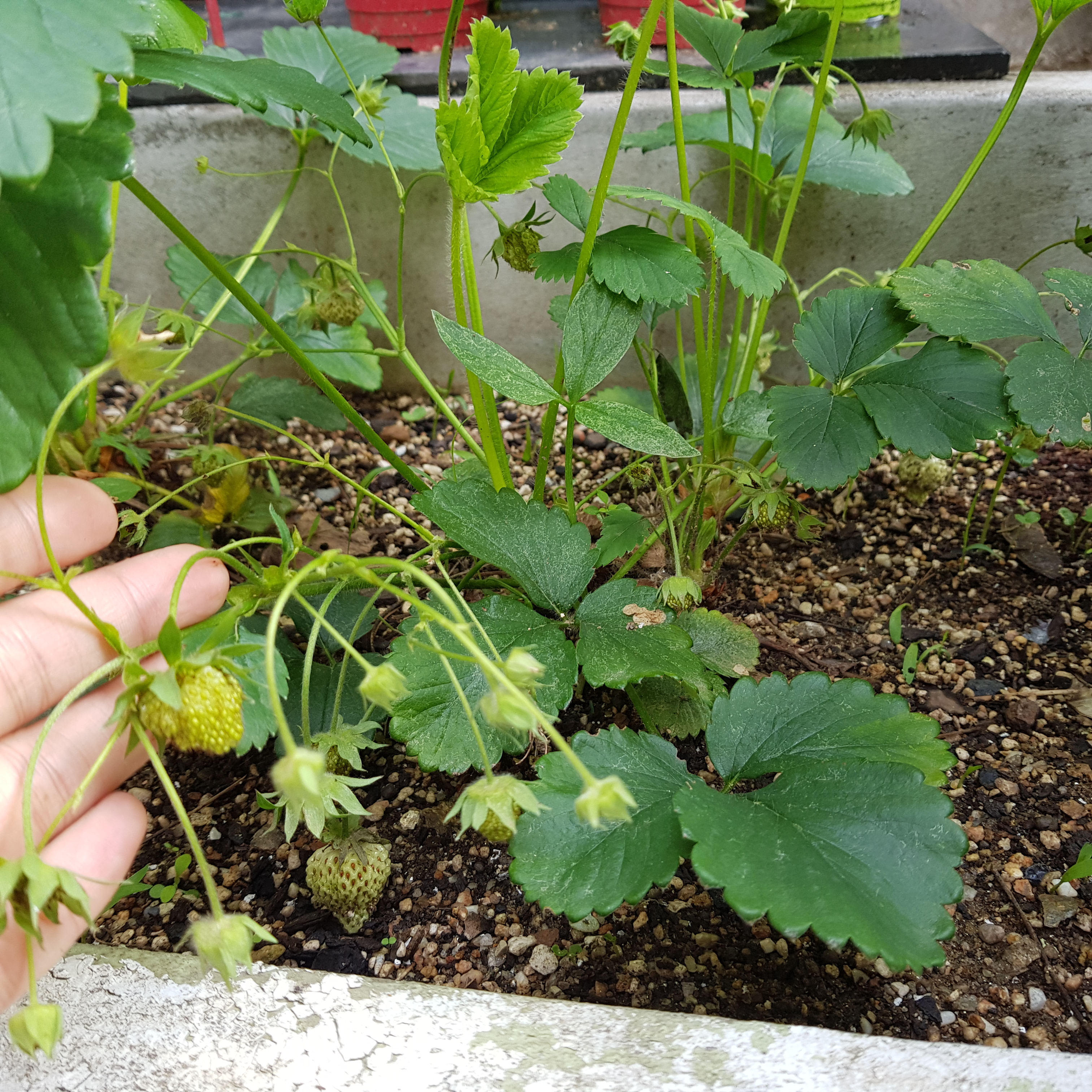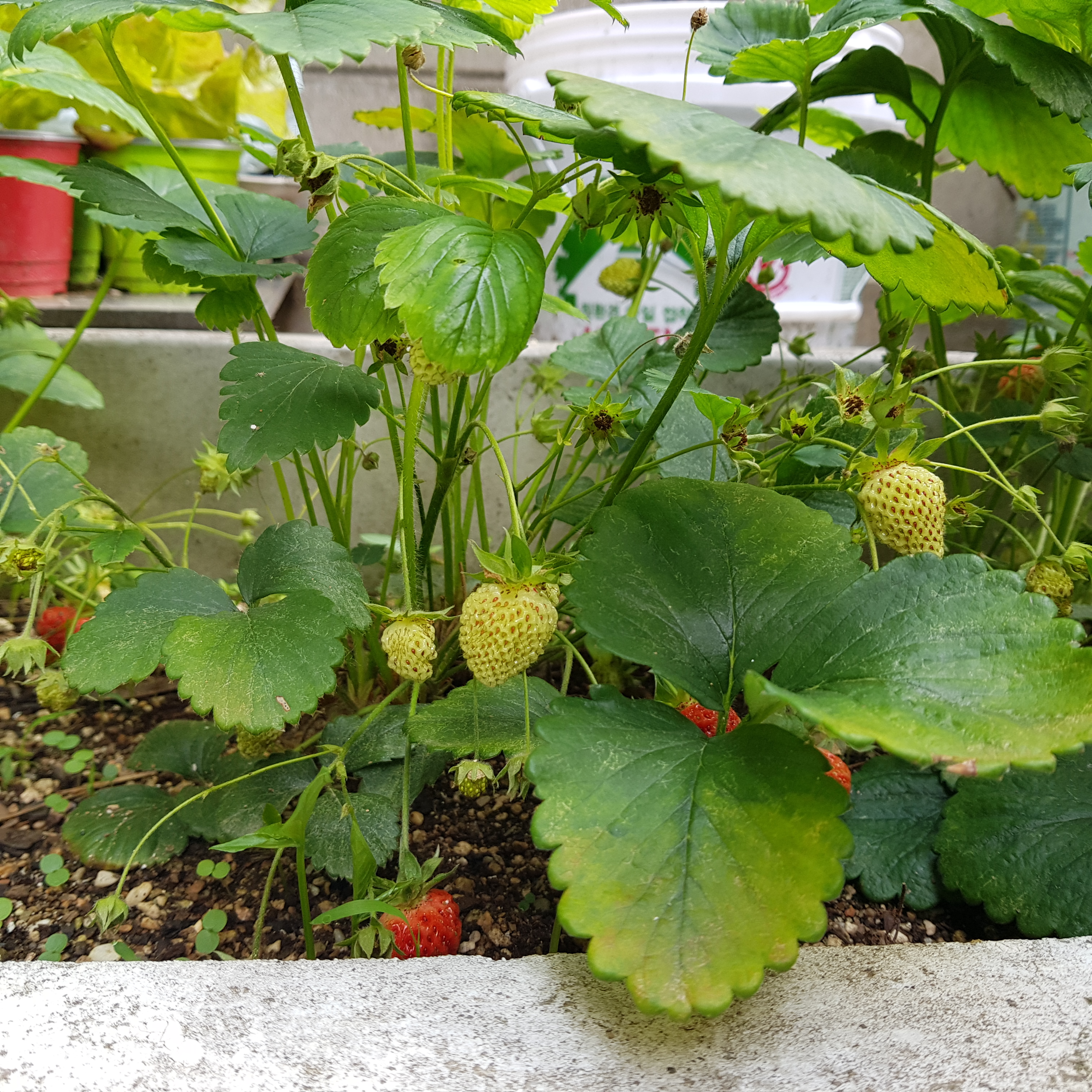 5월 20일. 1년 4개월. 2년생이다. 딸기가 정말 많이 열렸다. 작년에 비해서 훨씬 더 많이 열린 거 같다. 작년에는 한 그루에 4~5개 수확한거 같은데 올해는 한 그루에 몇 개가 열린지 정확히 세기도 어렵다. 많이 컸을때 한 번에 수확해야지. 런너들이 무럭무럭 자라나고 있었다. 더 이상 옮겨 심을 밭도 없어서 그냥 다 뽑아 버렸다. 뽑지 않으면 엉망진창 여기저기 뿌리를 내린다. 그래서 보이는 족족 뽑았다. 작은 화분과 큰 화분에 있는 딸기는 1년생 딸기다. 올해가 첫 번째 수확이다. 기대도 하지 않았던 화분 딸기에서도 딸기가 무럭무럭 자라고 있다.