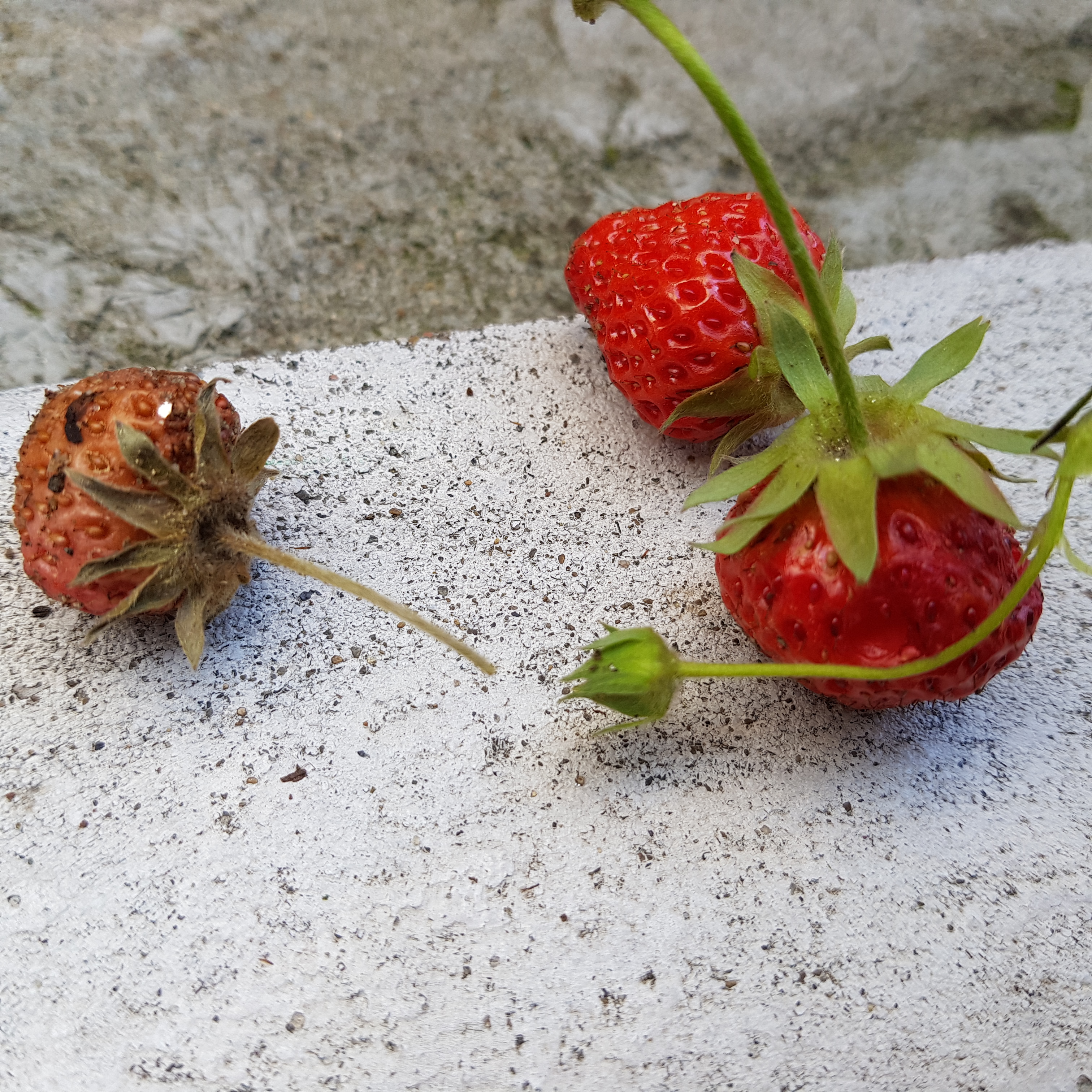 5월 17일. 먼저 열린 딸기가 시들고 상했다. 일찍 열린 딸기들은 수확해야 되는데 더 크게 키워서 먹으려고 일단 더 기다려 보기로 했다.