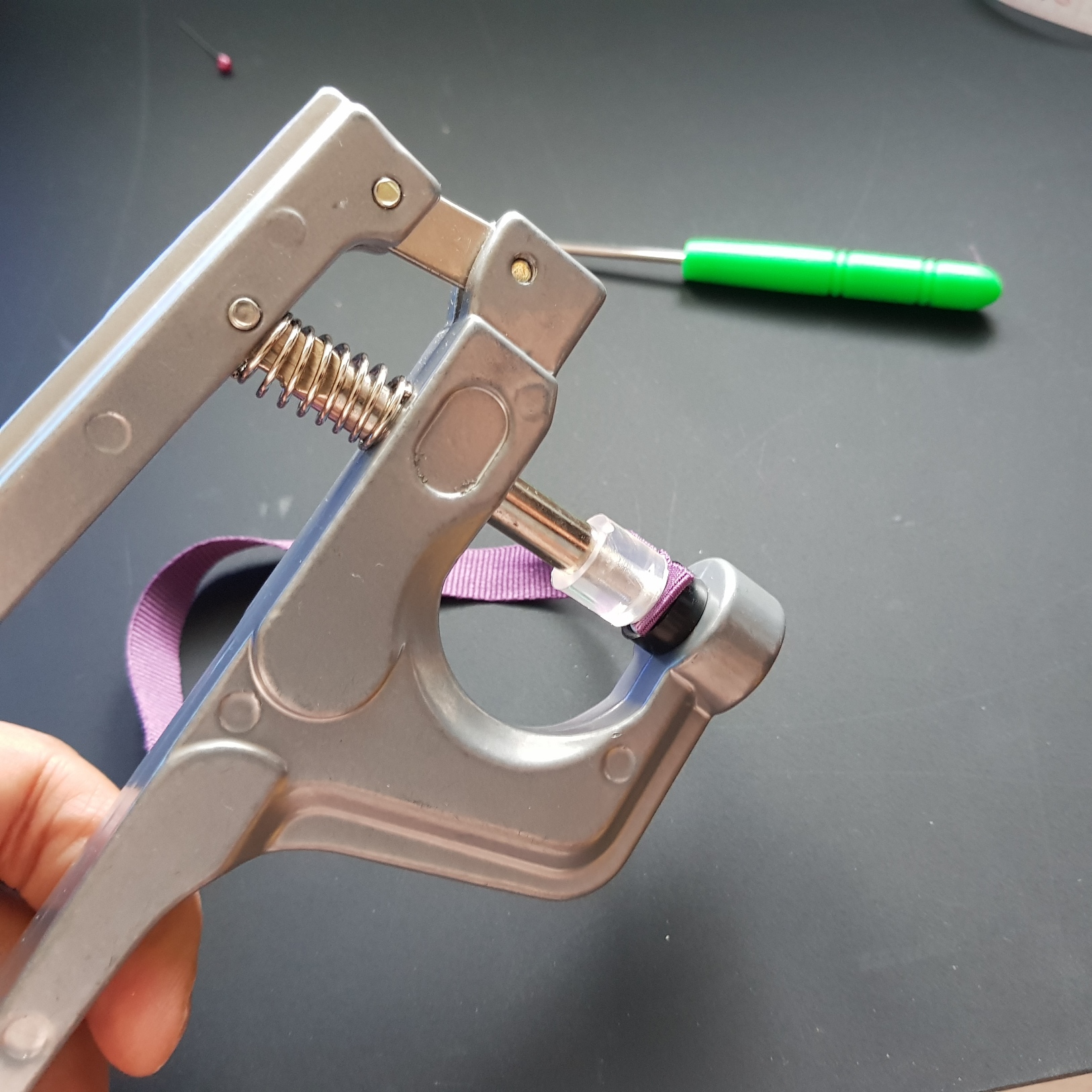 똑딱이 단추 다는 기구를 이용해 꾹 누른다.