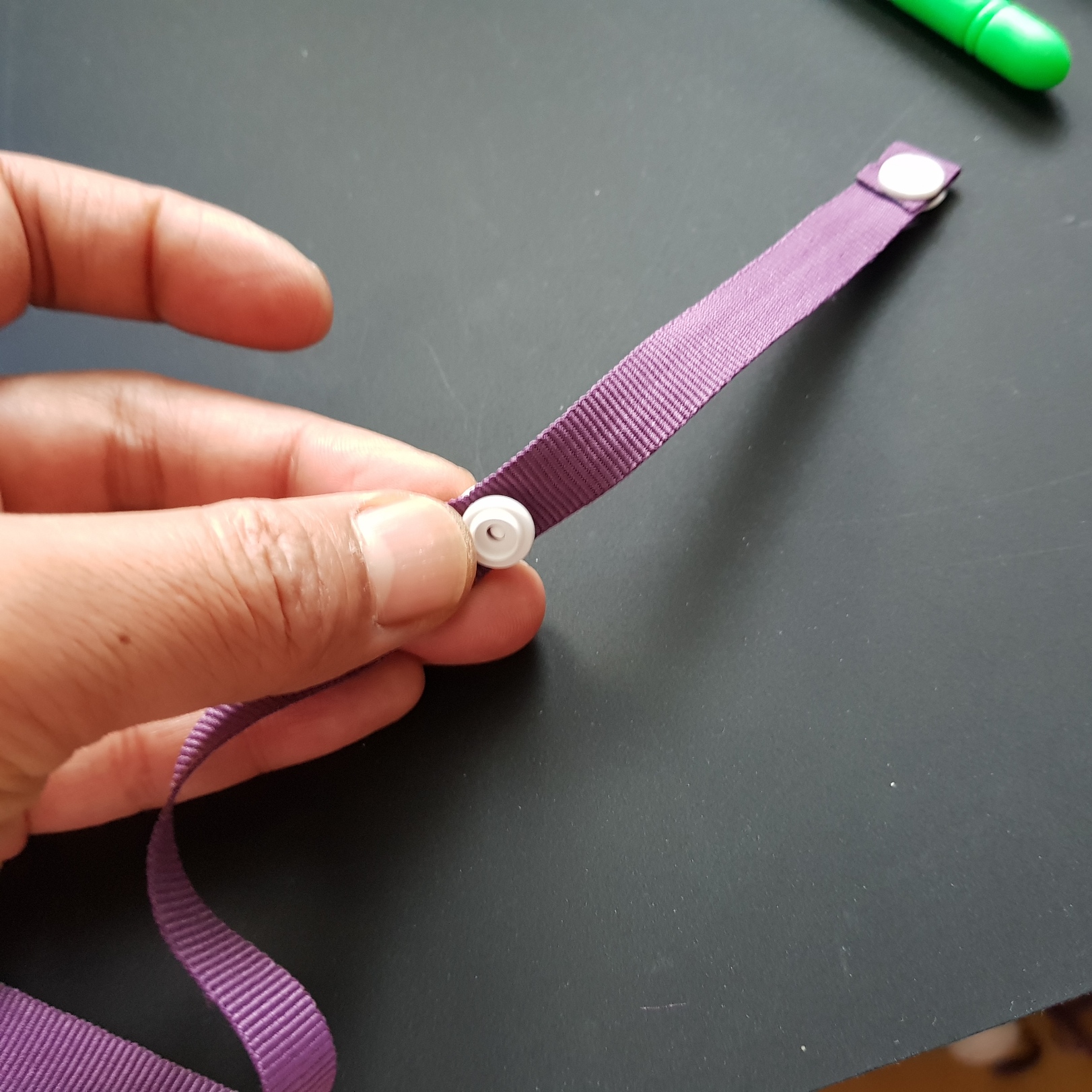 반대쪽도 위와 같은 방법으로 똑딱이 단추를 달았다. 5분도 걸리지 않고 마스크 목걸이 스트랩을 만들었다.