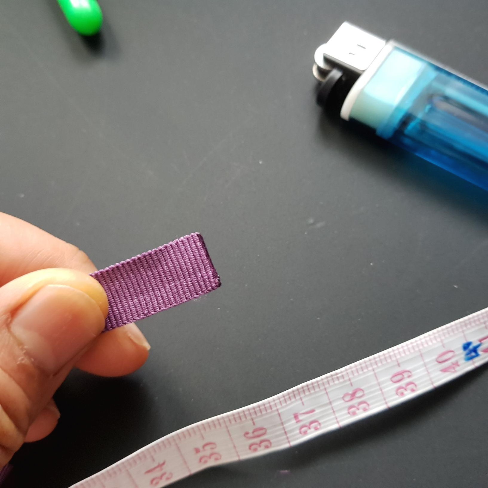 마스크 목걸이로 사용할 스트랩을 잘라준다. 아이가 사용할 것이므로 너무 길지 않게 60cm가 되도록 잘랐다.