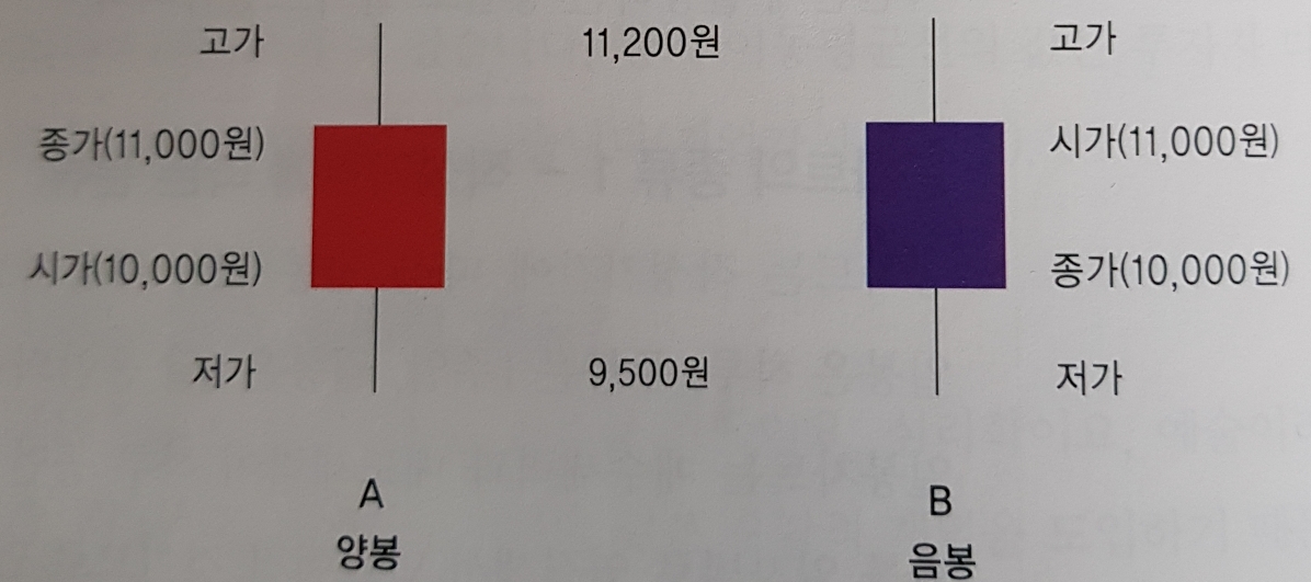 일봉(하루), 주봉(일주일), 월봉(한 달), 연봉(일 년), 5분봉(5분), 15틱(거래수 15개당 주가 변동)