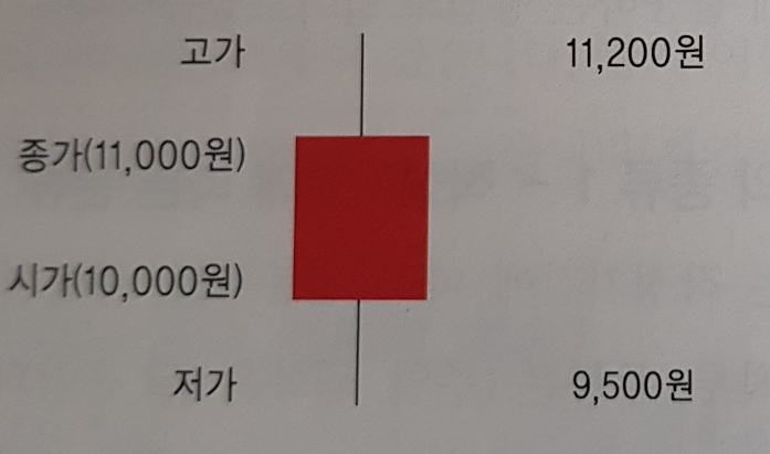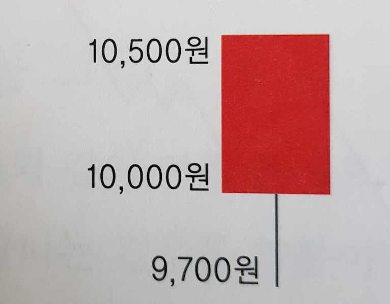 사각형 아래 꼬리는 하루 중 주가가 9,700원까지 내려가기도 했음.