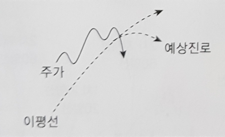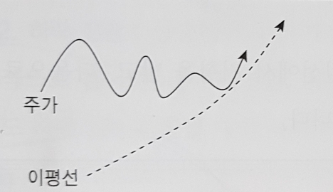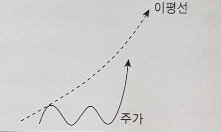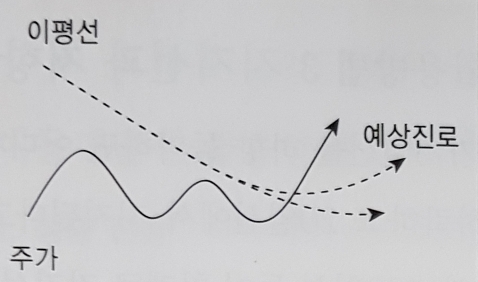 이평선이 상승추세, 주가가 이평선 아래로 하락