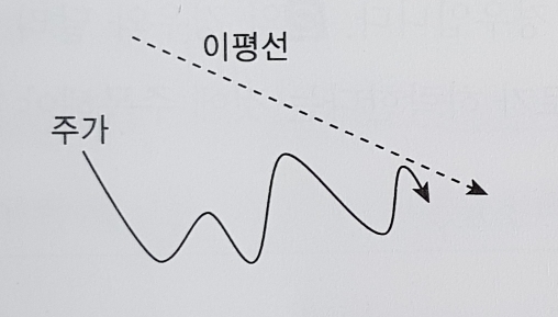 이평선이 상승추세, 주가가 이평선 아래로 하락