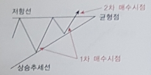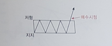 삼각형의 윗면이 수평이다. 저항선 돌파시 매수. 하지만 왜 꼭 내가 사면 정수리 일까?