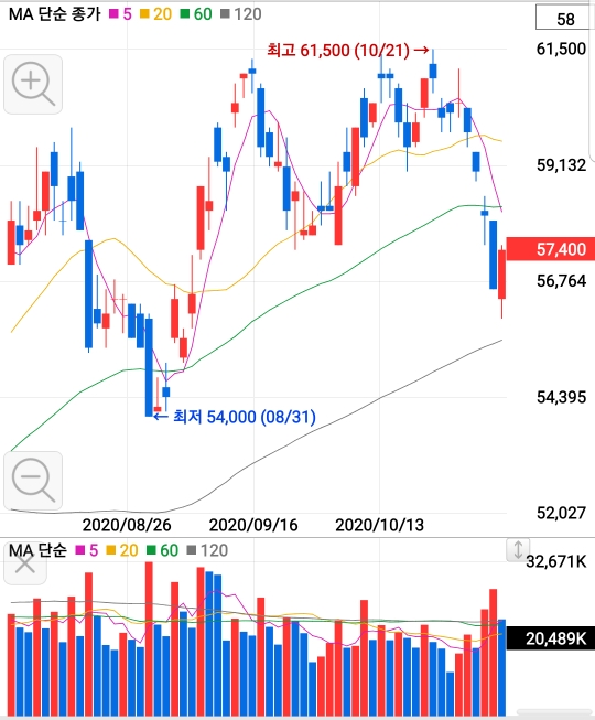 거래량이 줄면서 천정권에서 원을 그리면 매도. 머리로는 이해가 되지만 매도 버튼 누르기가 힘들다. 적당히 손절도 할 줄 알아야 하는데 말이다.