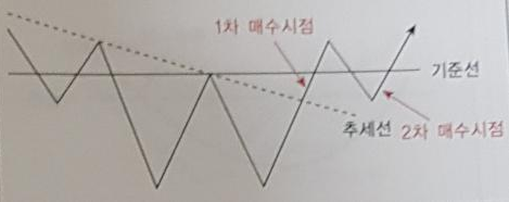 박스권 상향 돌파시 매수. 첫 번째 박스권 상향 돌파 후 매수했는데 두 번째 상승 박스권이 안 생기고 떡락하는 경우도 있었다.
