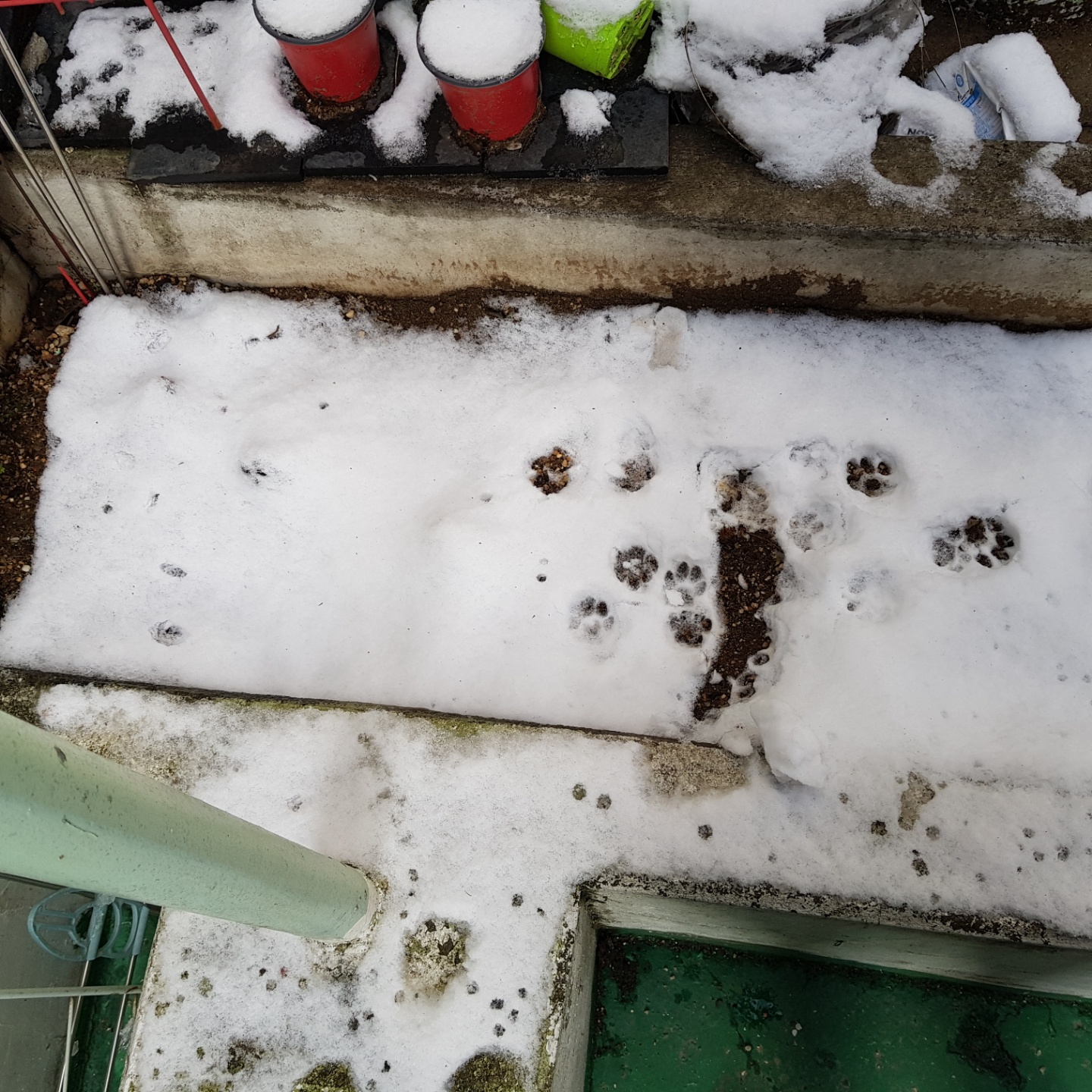 눈이 녹고 딸기밭의 흙이 보인다. 처참하다. 고양이 똥이 가득하다. 빌어먹을!