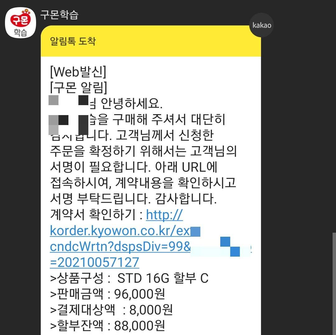 아무튼 그래서 시키는데로 Yes, Yes 했더니 장문의 카톡 메시지가 왔다. 뭐라고 뭐라고 적혀 있는데 읽기가 싫다. 얼마가 할인되는지는 할인금액이 얼마인지 그따위 정보는 별로 알고 싶지 않다. 중요한 건 내가 스마트펜을 12개월 약정하고 영어학습지를 하면 월 결제 금액이 얼마인지가 가장 중요하다. 스마트펜은 12개월 약정하면 60,000원. 성인 구몬 학습지 월 35,000원. 그래서 월 40,000원이다. 근데 원래 스마트펜은 8,000원 결제되고 학습지는 32,000원 결제되는 거라고 한다. 어쨋튼 구몬 성인 영어 월 4만원!!