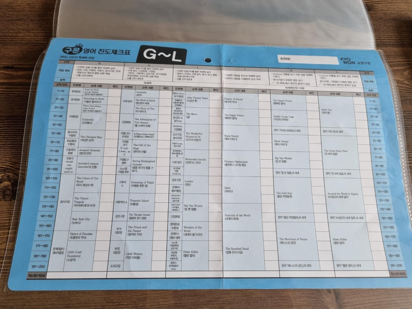 그리고 위의 사진과 같이 진도 체크표를 주신다. A~F 까지가 초등학교 6학년이면 끝난다고 하셨다. 헐ㅡㅡ;; 요즘 초등학생 머리가 참 좋은가보다. 아무튼 A단계가 끝나는 날 테스트를 한다고 한다. 혼자 하는 것보다 훨씬 재밌고 좋다. 누군가가 나의 레벨을 체크해주고 숙제를 검사해 준다는 것이 너무 감사한 일이다. 아~ 학교 다닐 땐 몰랐는데...