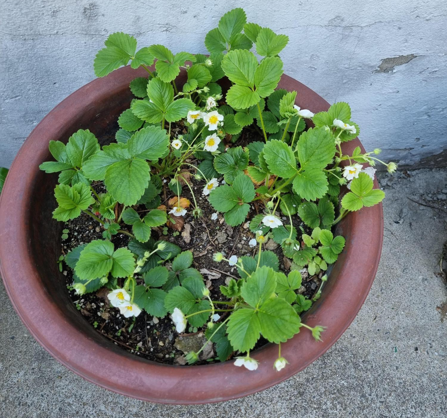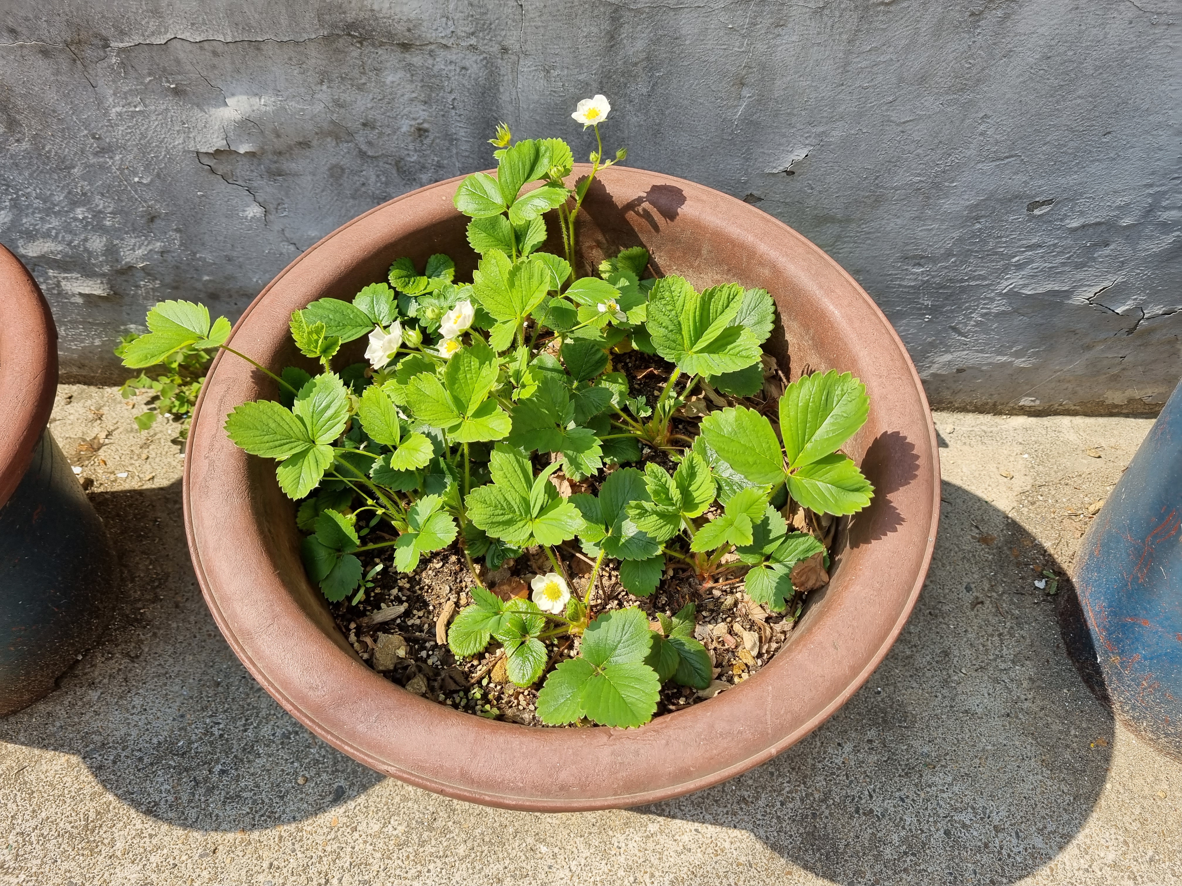 큰 화분 딸기는 꽃이 많이 핀다. 꽃이 많이 피는 걸로 보아 딸기가 많이 열리겠지만 또 엄청 작은 딸기들만 열리겠지!