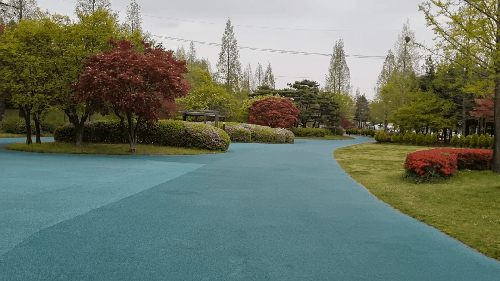 위성으로 보면 인라인 스케이트장이 엄청 작아 보이지만 실제로 크기가 꽤 크다. 비록 화랑 유원지 인라인 스케이트장보다 작지만. 그래도 연습하기 충분한 크기다. 주차장도 멀지 않고 바로 옆에 있다. 주차하고 일동 단원 조각 공원 인라인 스케이트장으로 고고~
