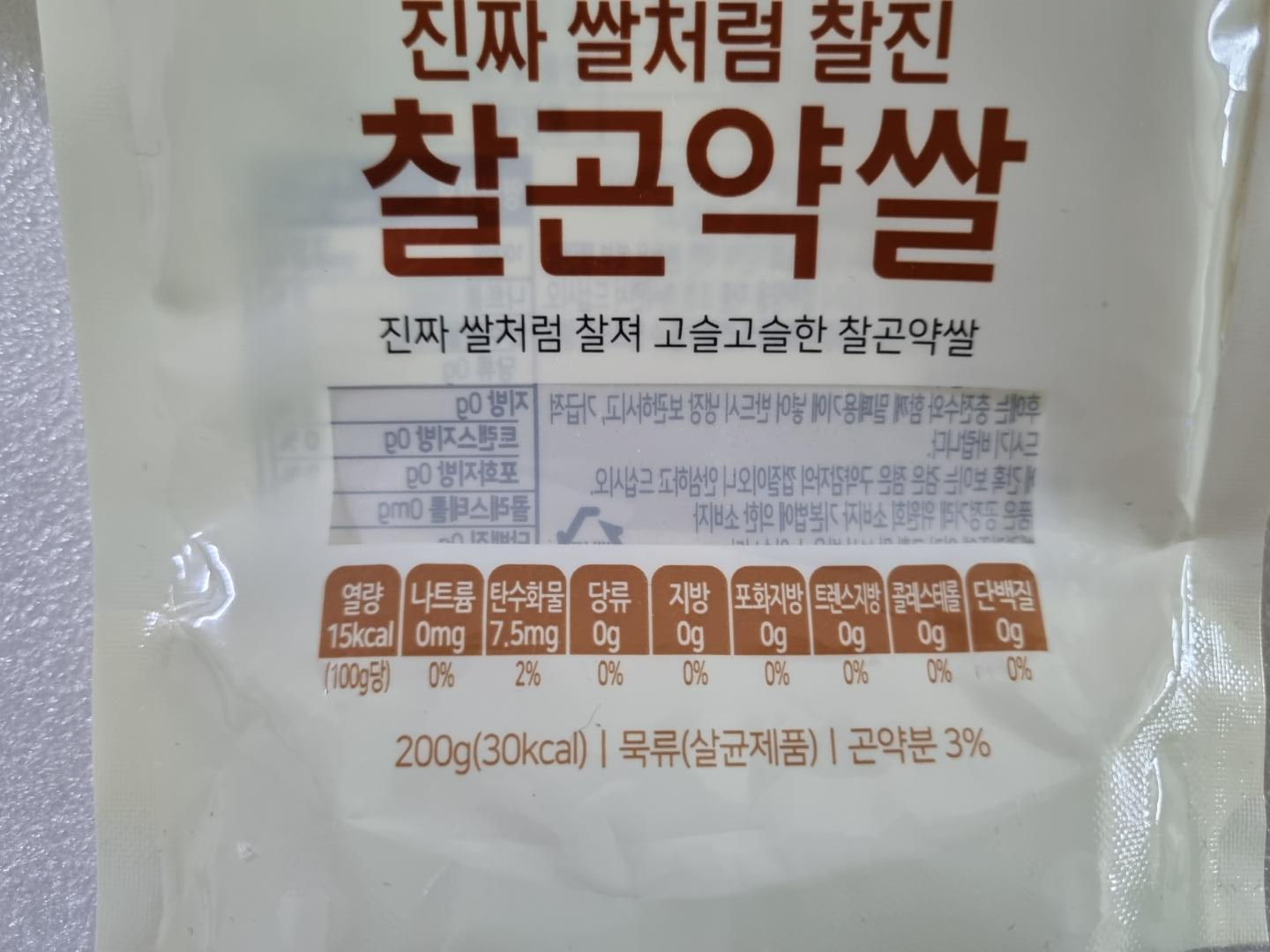 포장을 개봉한 남은 찰곤약쌀은 냉장 보관한다. 내가 냉장 보관하기 귀찮아서 한 번에 한 봉지를 쓴다.
