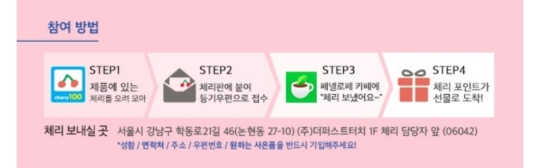주소를 적는다. 서울시 강남구 학동로 21길 46.(논현동 27-10) (주)더퍼스트터치 체리 담당자 앞. 02)1666-2135. (우)06042