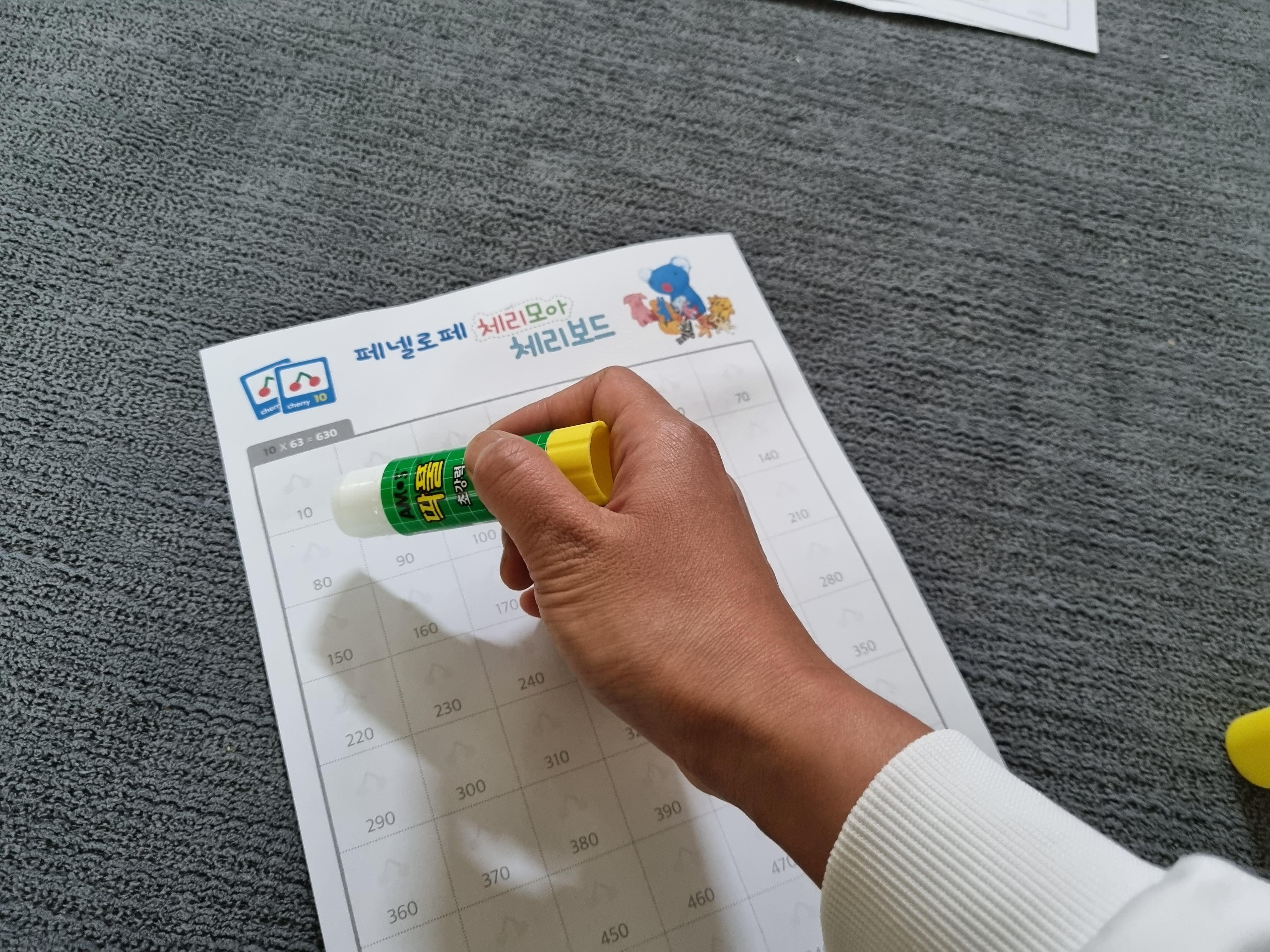 마지막으로 체리 포인트 위에 테이프로 한번 더 붙여야 한다. 풀로만 붙이면 체리 포인트가 떨어진다.