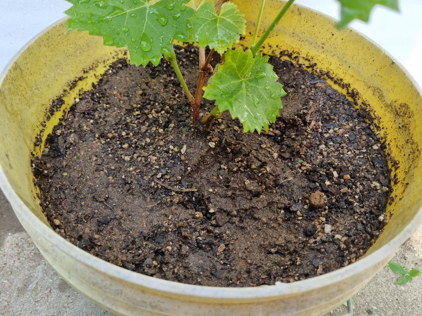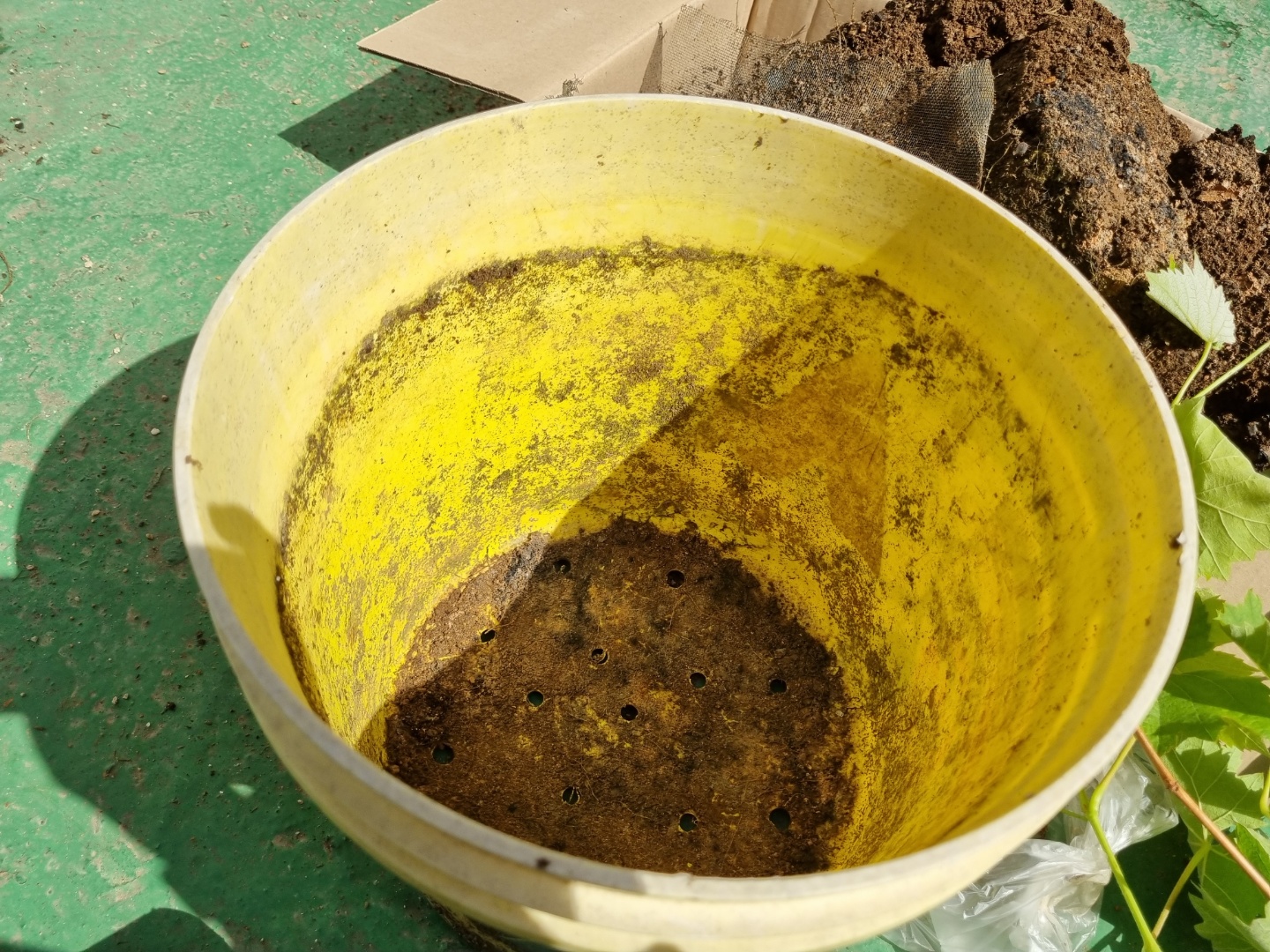 작년에 토마토를 키웠던 화분이다. 여기에 나머지 샤인머스캣 묘목을 다시 심을 것이다.