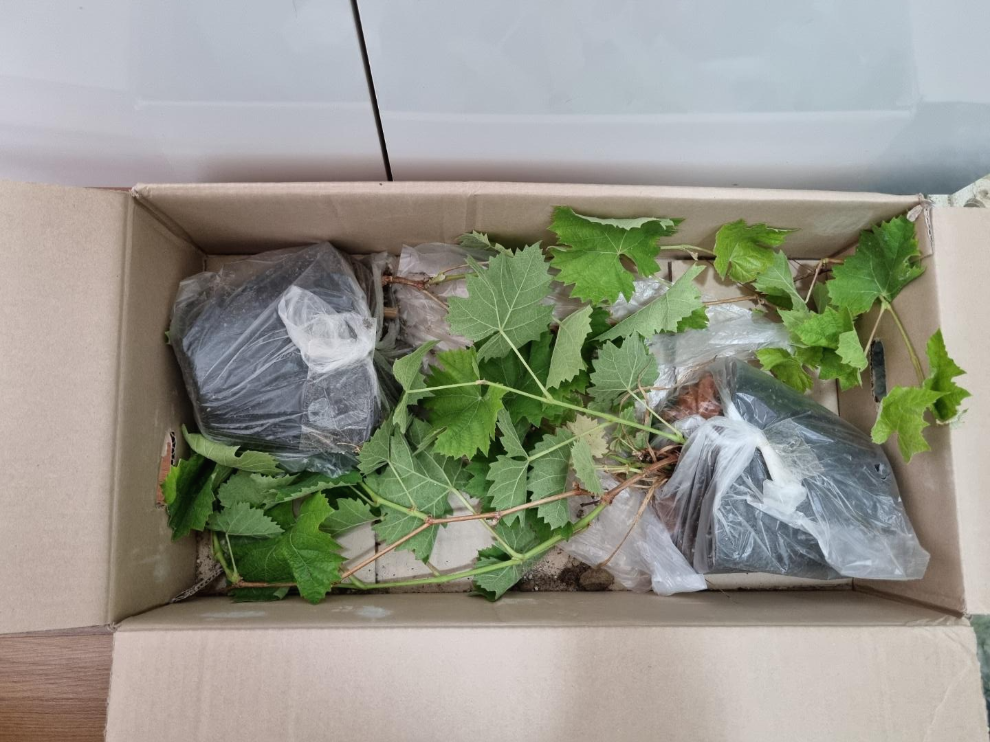 친절한 판매자님께서 샤인머스캣 묘목이 상하지 않도록 박스 안에 많은 쓰레기를 넣어주셨다.