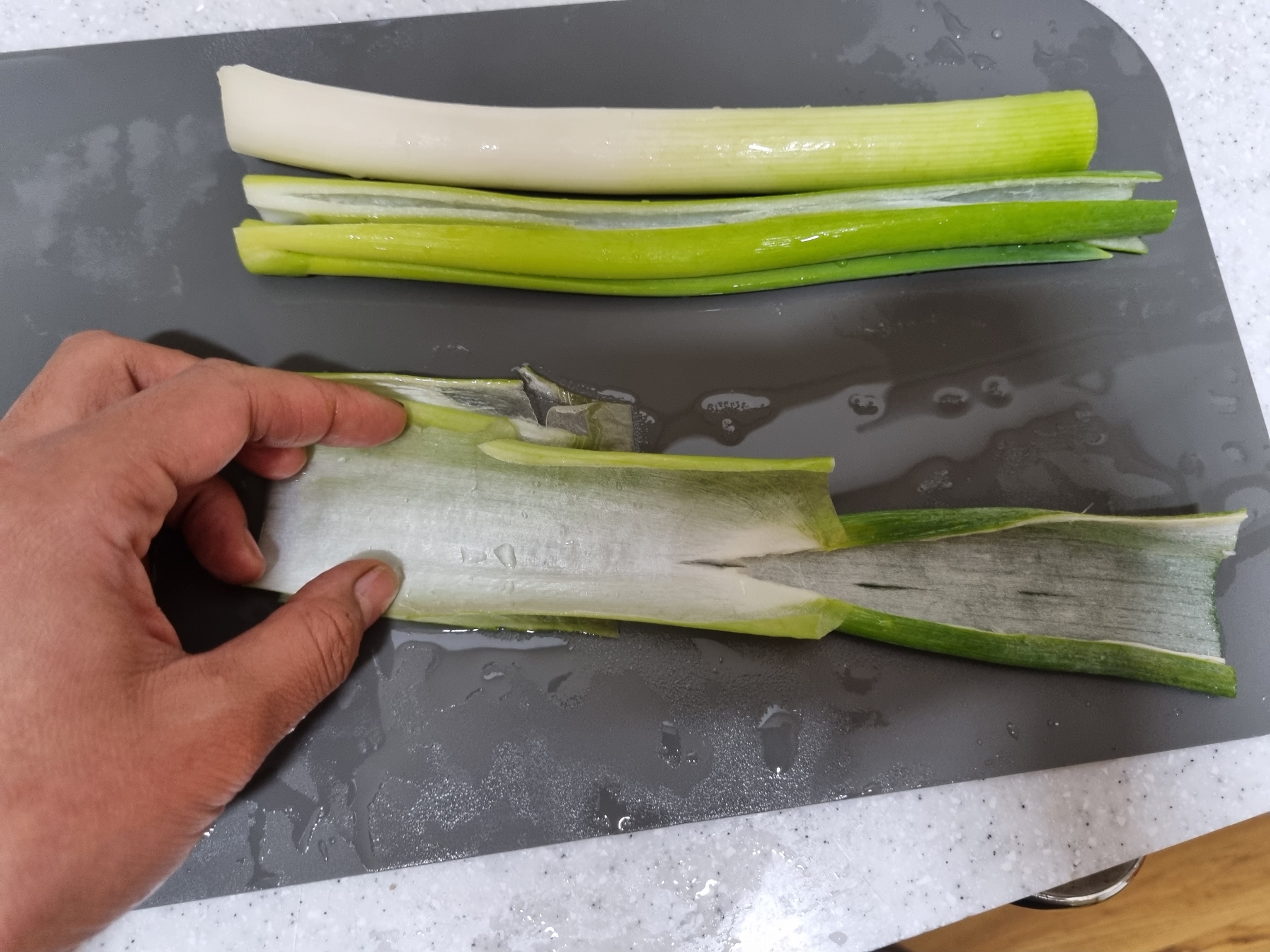 칼집을 넣어 대파를 펼쳐 줍니다.