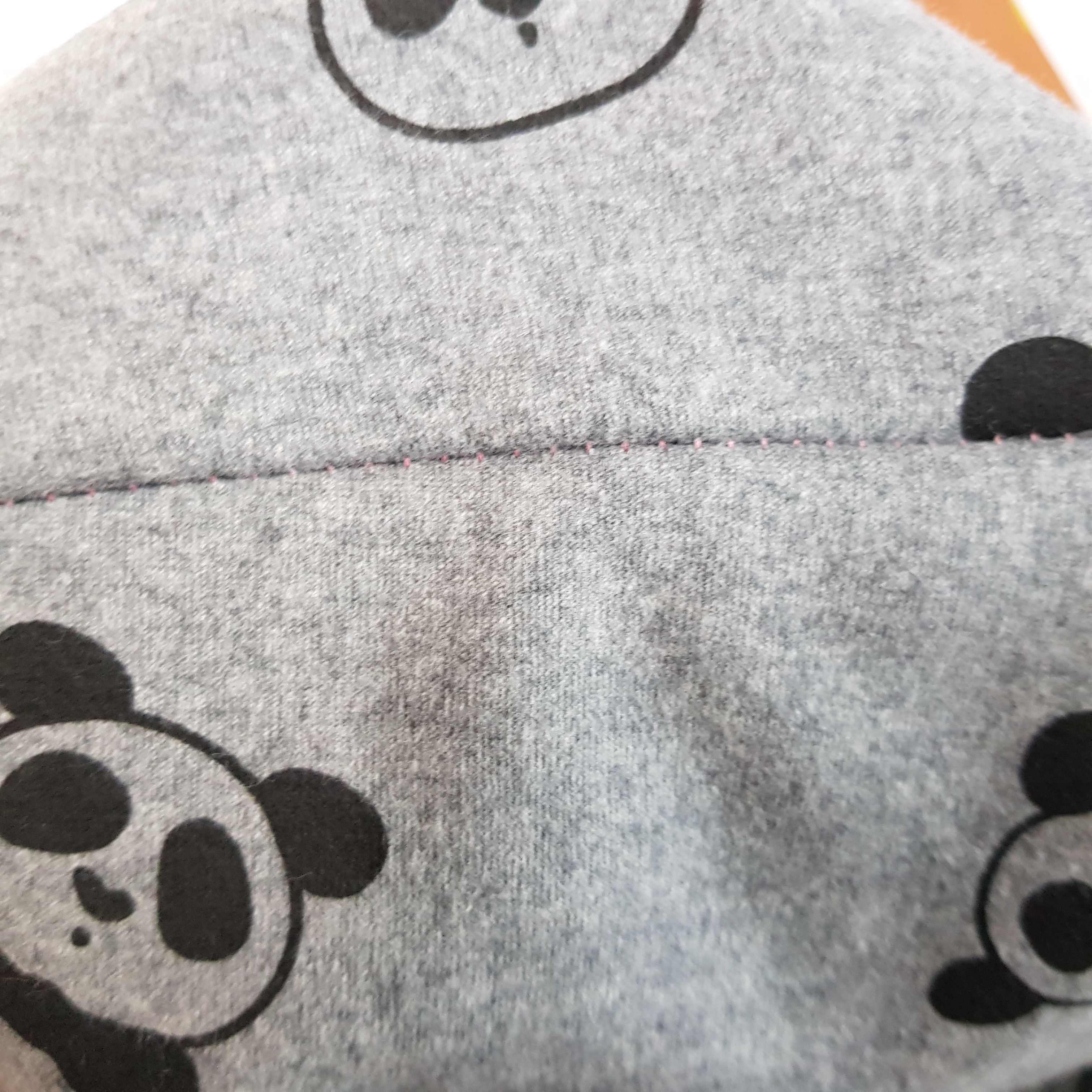 아래 사진에 보이듯 내가 재봉한 원단과 사용 설명서를 비교해 봤다. 앞면은 그럭저럭 괜찮지만 뒷면에 보면 왼쪽 바늘 실과 오른쪽 바늘 실이 너무 가까이 붙어 있다.