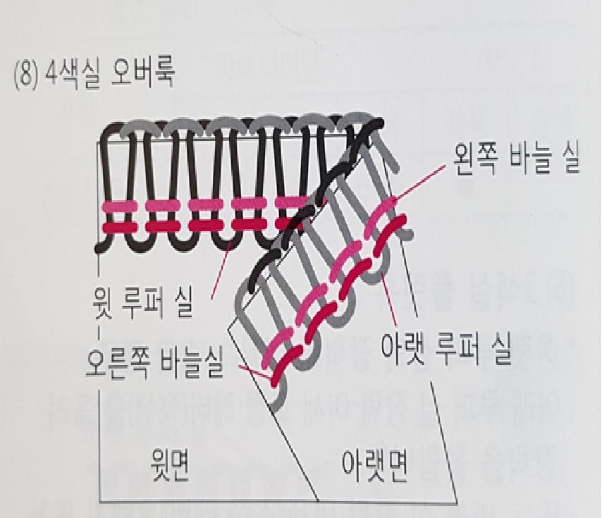 오버록을 하는 이유는 원단의 끝부분에 실 풀림(올풀림)을 방지하기 위해서 오버록 재봉틀을 사용한다. 메리룩 0115A 오버룩 재봉틀은 자동 장력 조절이 가능하다. 그러나 내가 원하는 만큼 자동으로 장력을 조절해 주지는 못한다. 아마도 원단의 종류가 워낙 다양하기 때문일 것이라 추측한다. 주로 4 색실 오버록을 사용하는데 항상 옷의 바깥쪽에서 실이 보인다. 당기지 않아도 실이 보인다. 아래 사진을 첨부했다.