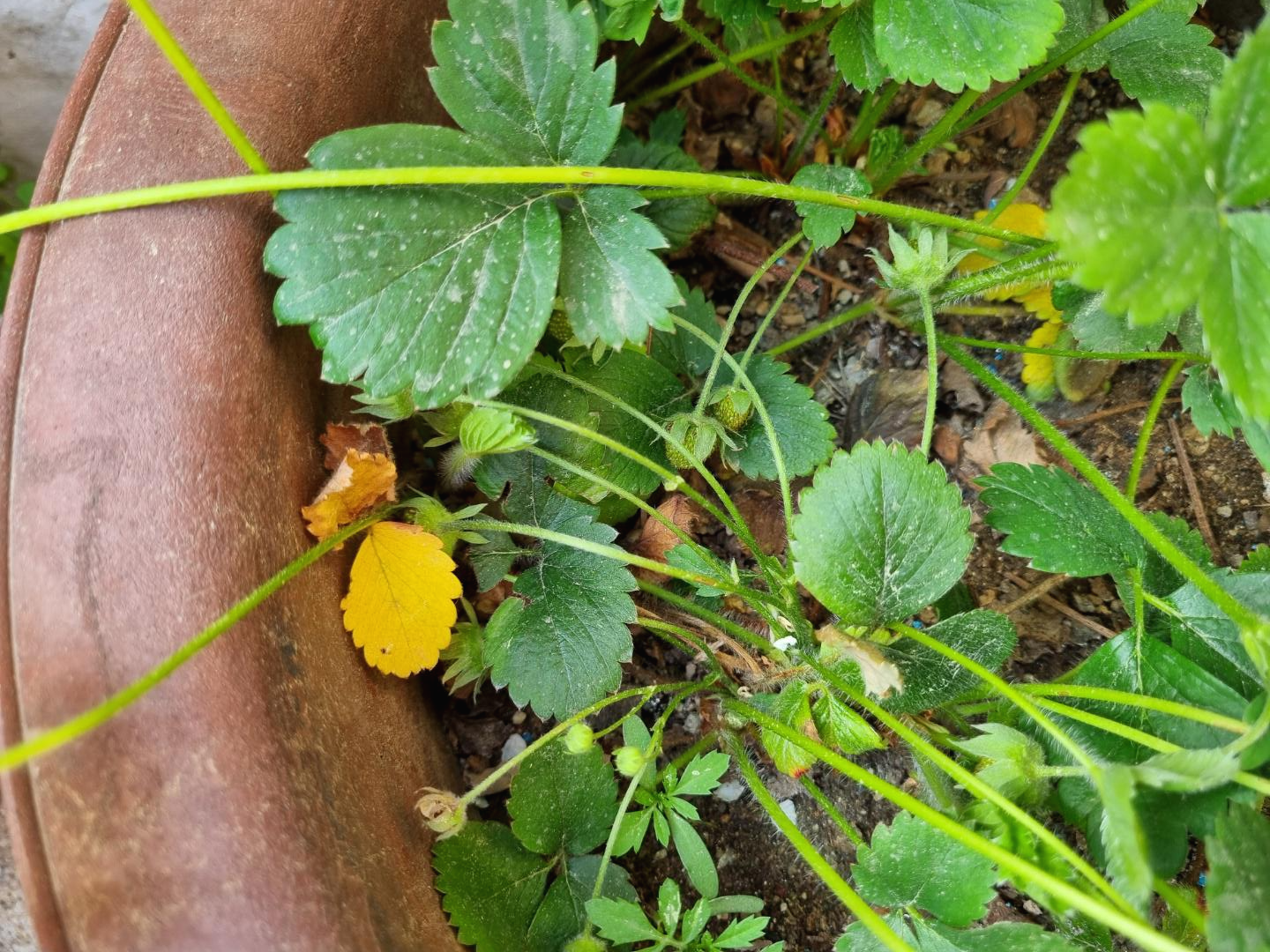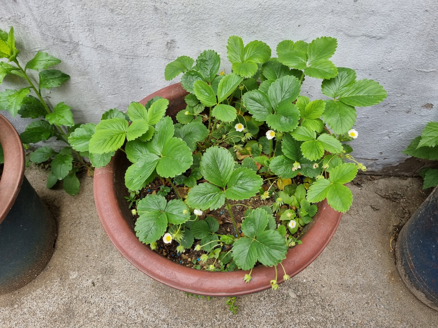 화분 딸기는 무럭무럭 잘 자라고 있다. 잎이 시들지도 않았으며 아주 파릇파릇하다.