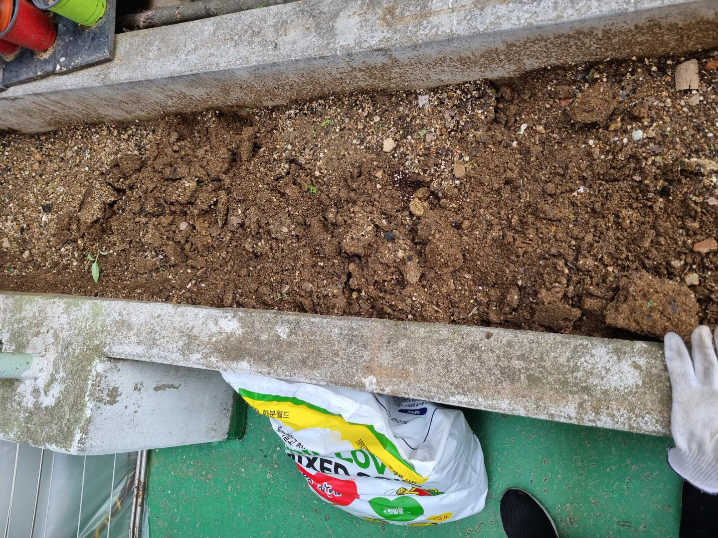 배양토를 뿌리기 전에 밭(?)을 갈았다. 화단이라고 해야 더 적당할 것 같다. 어쨌든 지렁이가 나올까 봐 두렵긴 하지만 모종삽으로 흙을 갈았다.
