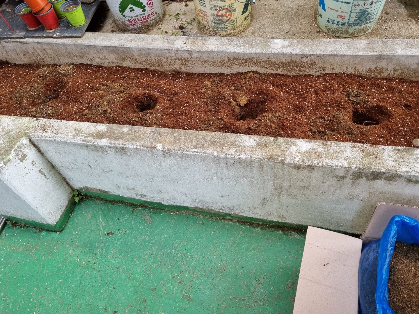 모종삽으로 흙을 퍼 나르기 힘들다. 최고급 장비를 만들었다. 위의 사진에서 보이는 우유통 아닌 최신식 흙 퍼나르는 장비를 이용하여 흙을 많이 버렸다.