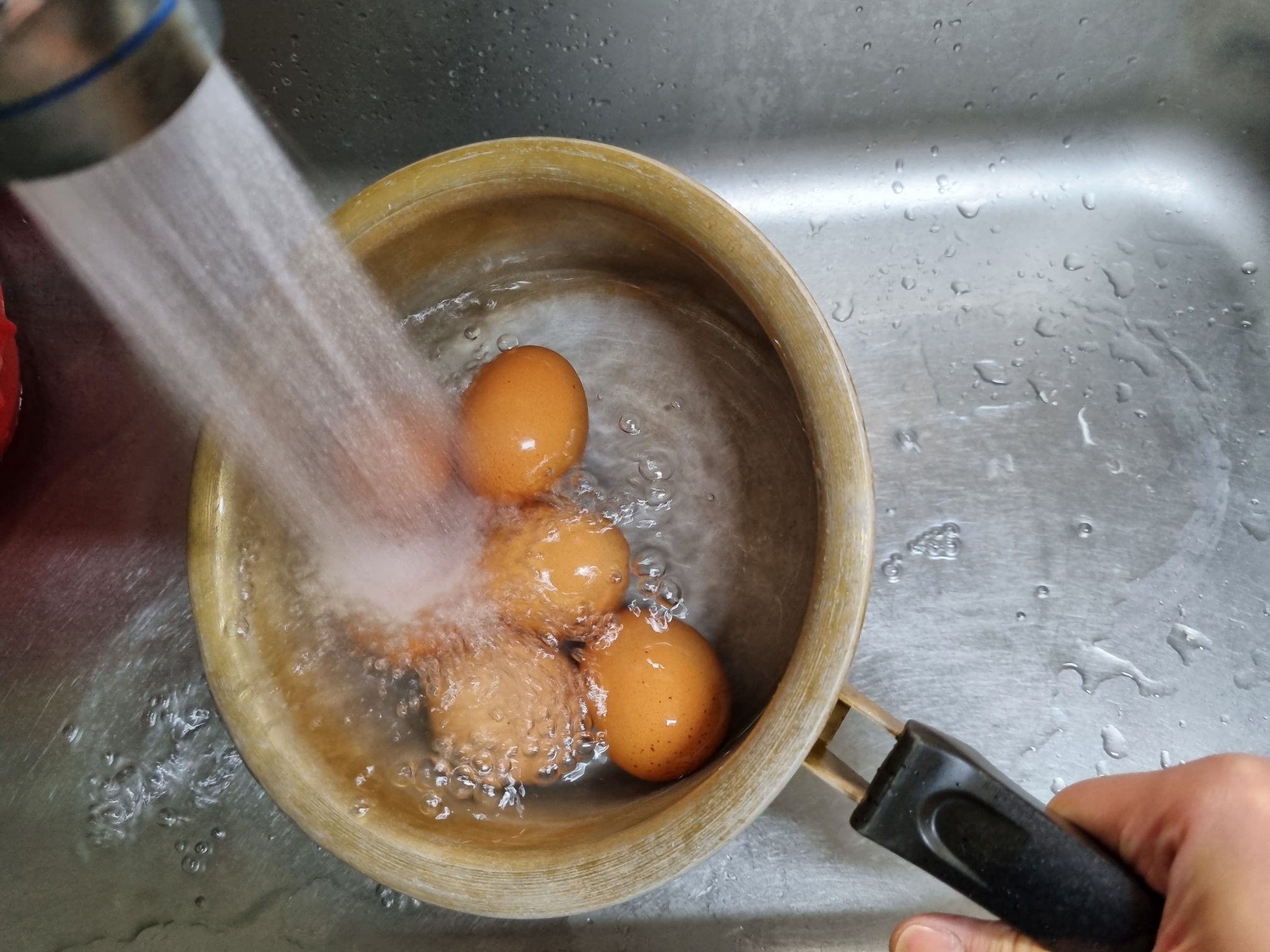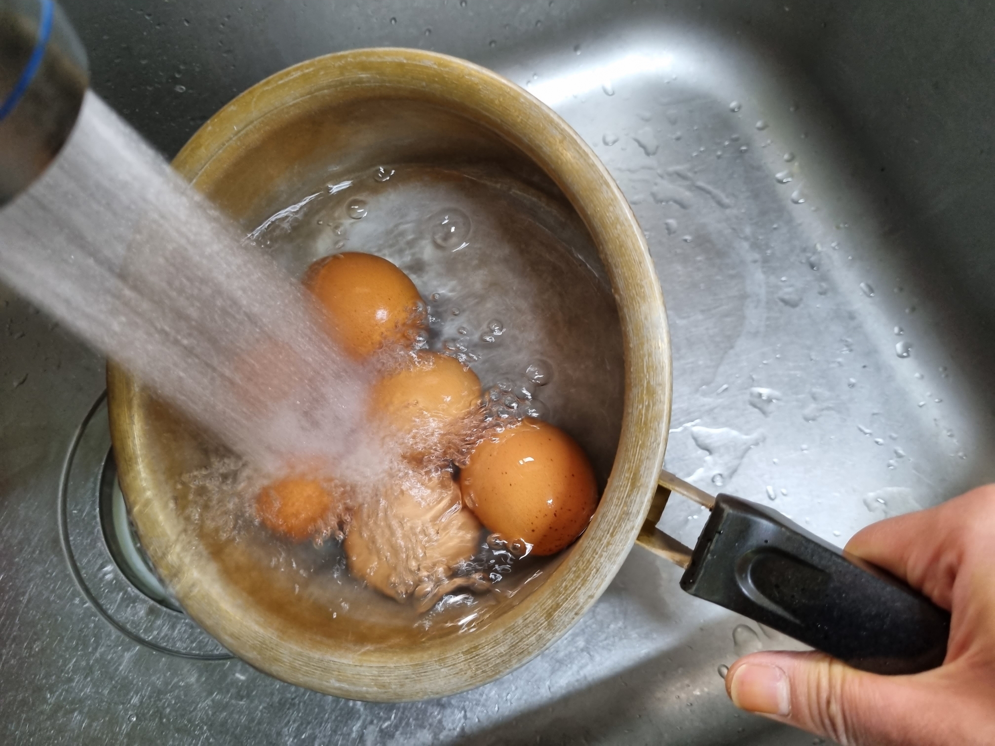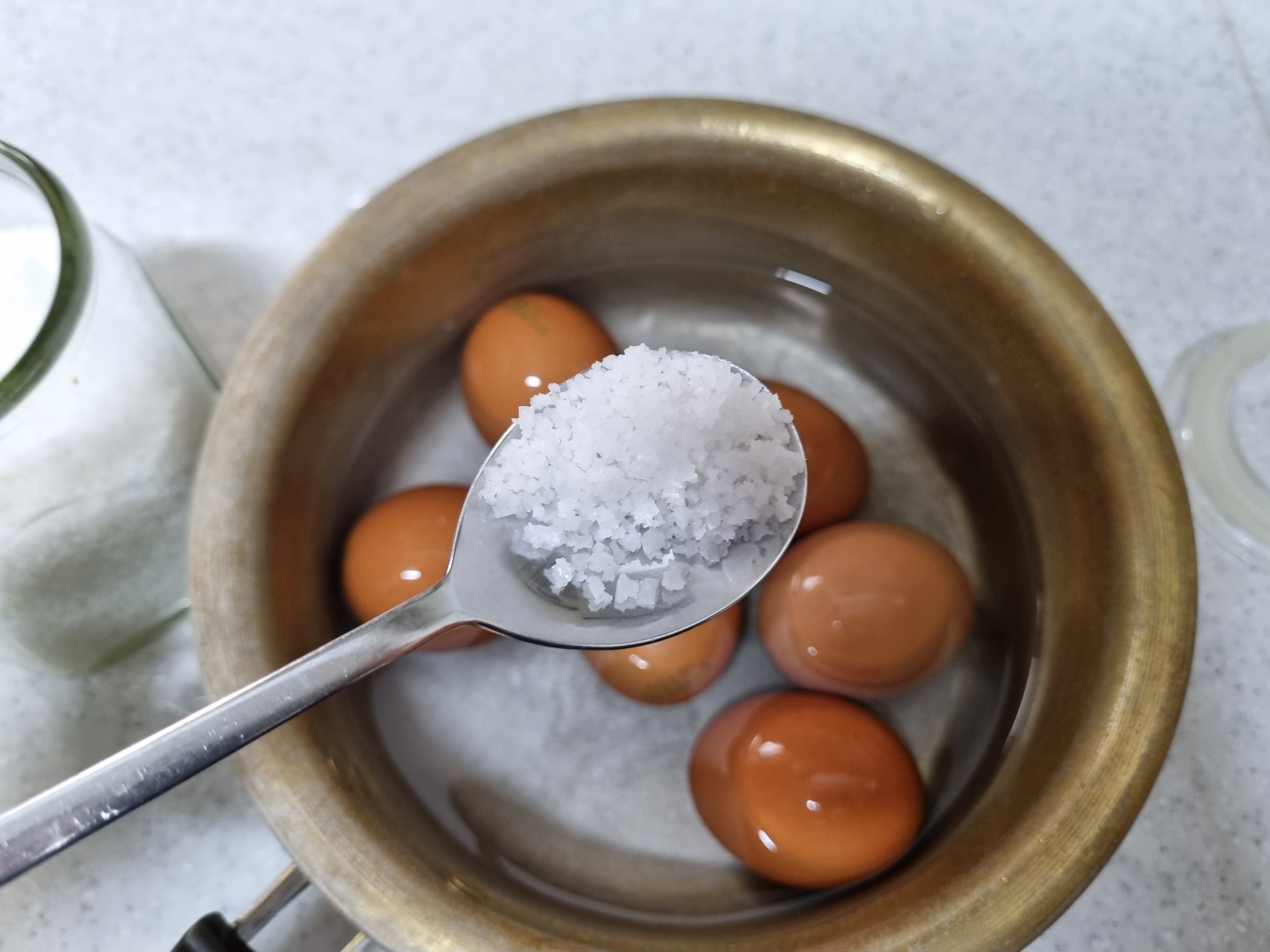 계란을 삶기 전에 소금을 넣어요. 소금을 넣으면 깨지지도 않고 계란 껍데기도 예쁘게 잘 벗겨 진대요. 사실인지는 잘 모르겠어요. 소금이 있으니깐 그냥 넣어봐요. 경험에 의하면 계란이 깨지지 않게 삶는 방법은 냉장고에서 바로 꺼내서 삶지 말고 상온에서 좀 놔뒀다 삶으면 깨지지 않아요.