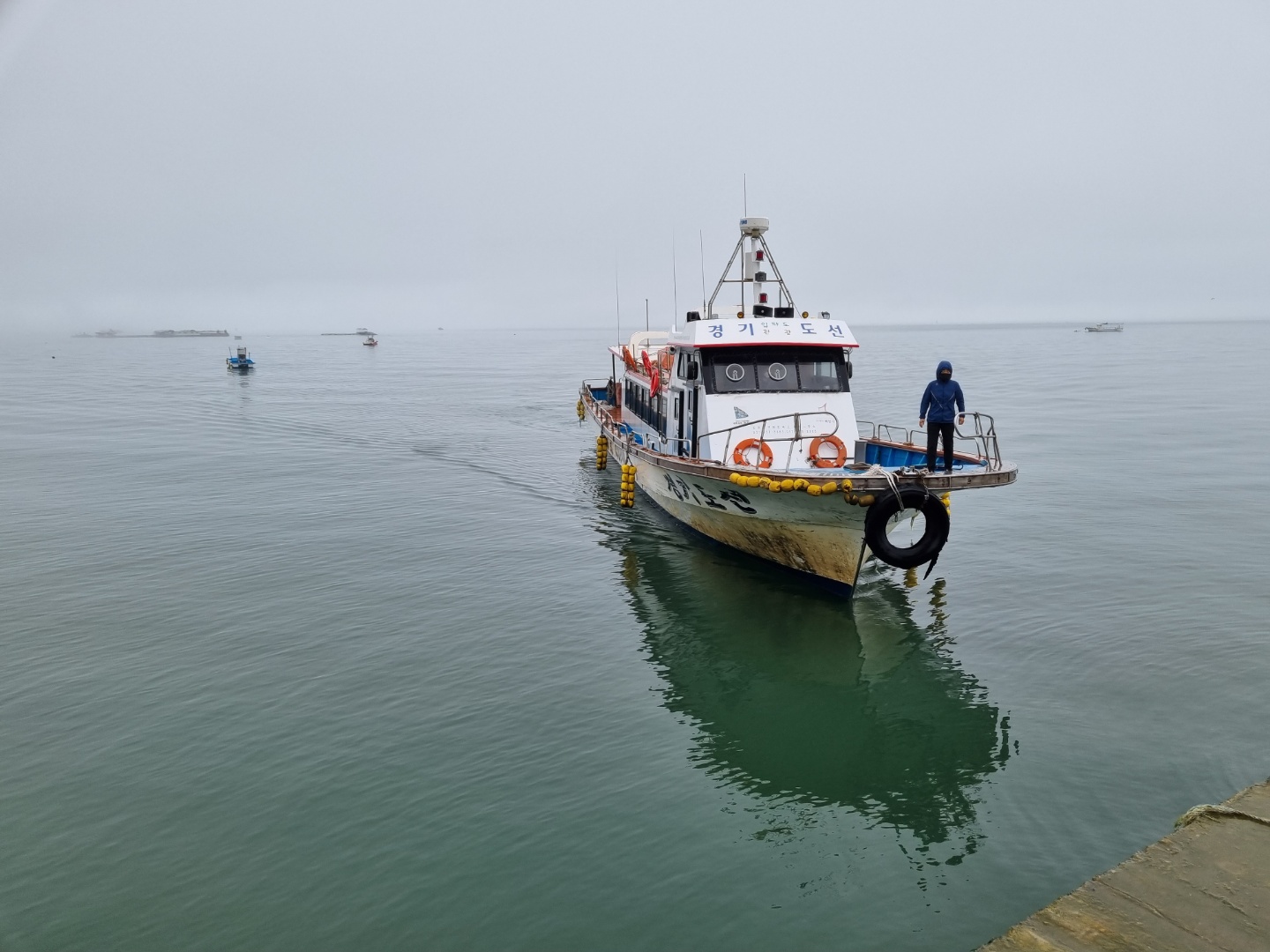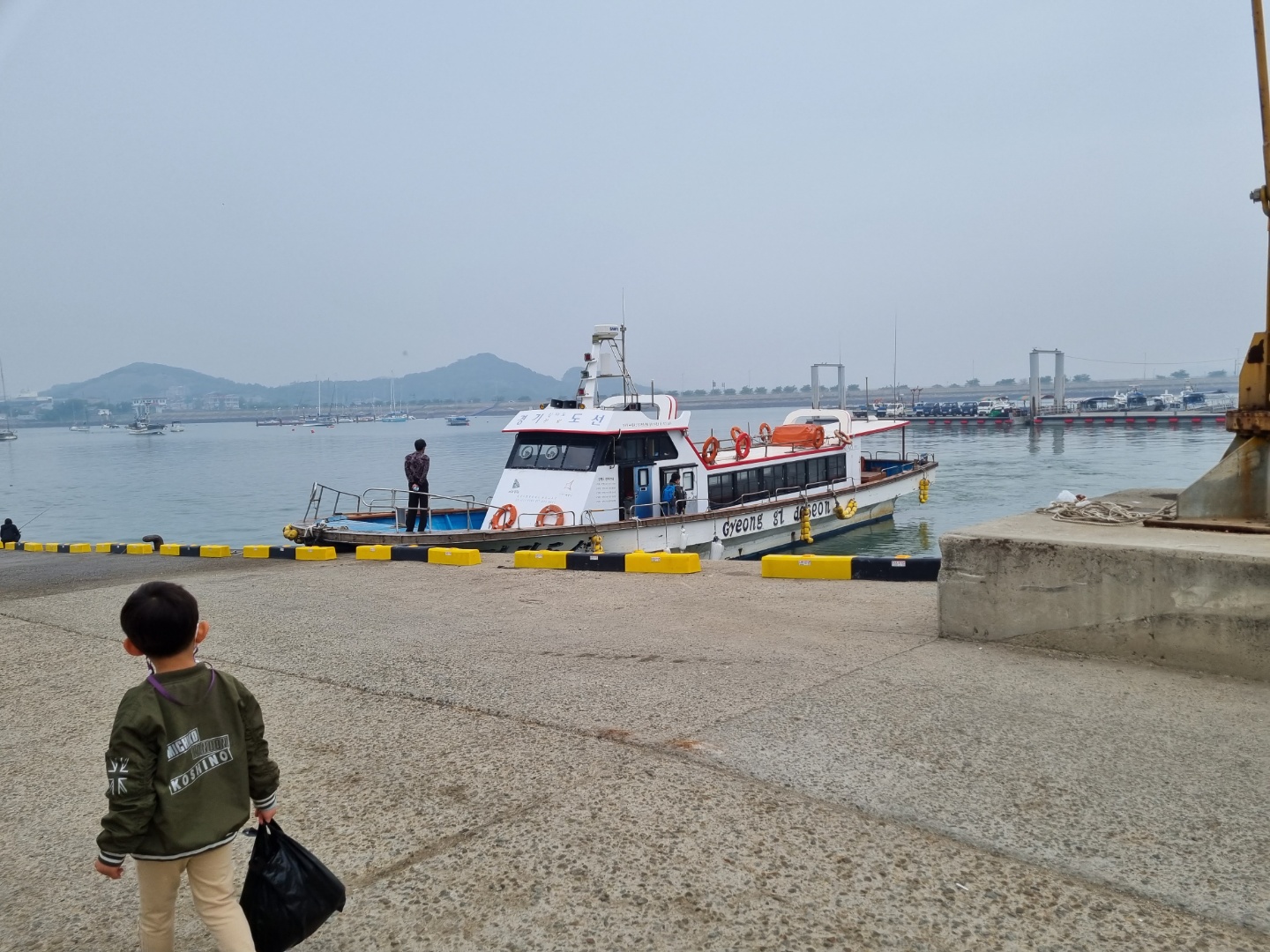 선착장으로 갔더니 경기도선이 있어요. 하하하~ 유람선 아니에요. 그냥 작은 여객선이에요. 숨통이 트이는 사진이네요. 선장과 표를 팔았던 선원 1분이 계세요. 모두 엄청 친절해요. 넘어지지 않도록 손도 잡아주시고요, 손에 짐을 잔뜩 들고 있으니깐 직접 아이를 들어서 안전한 곳까지 안아서 데려다주세요. 감사해요.