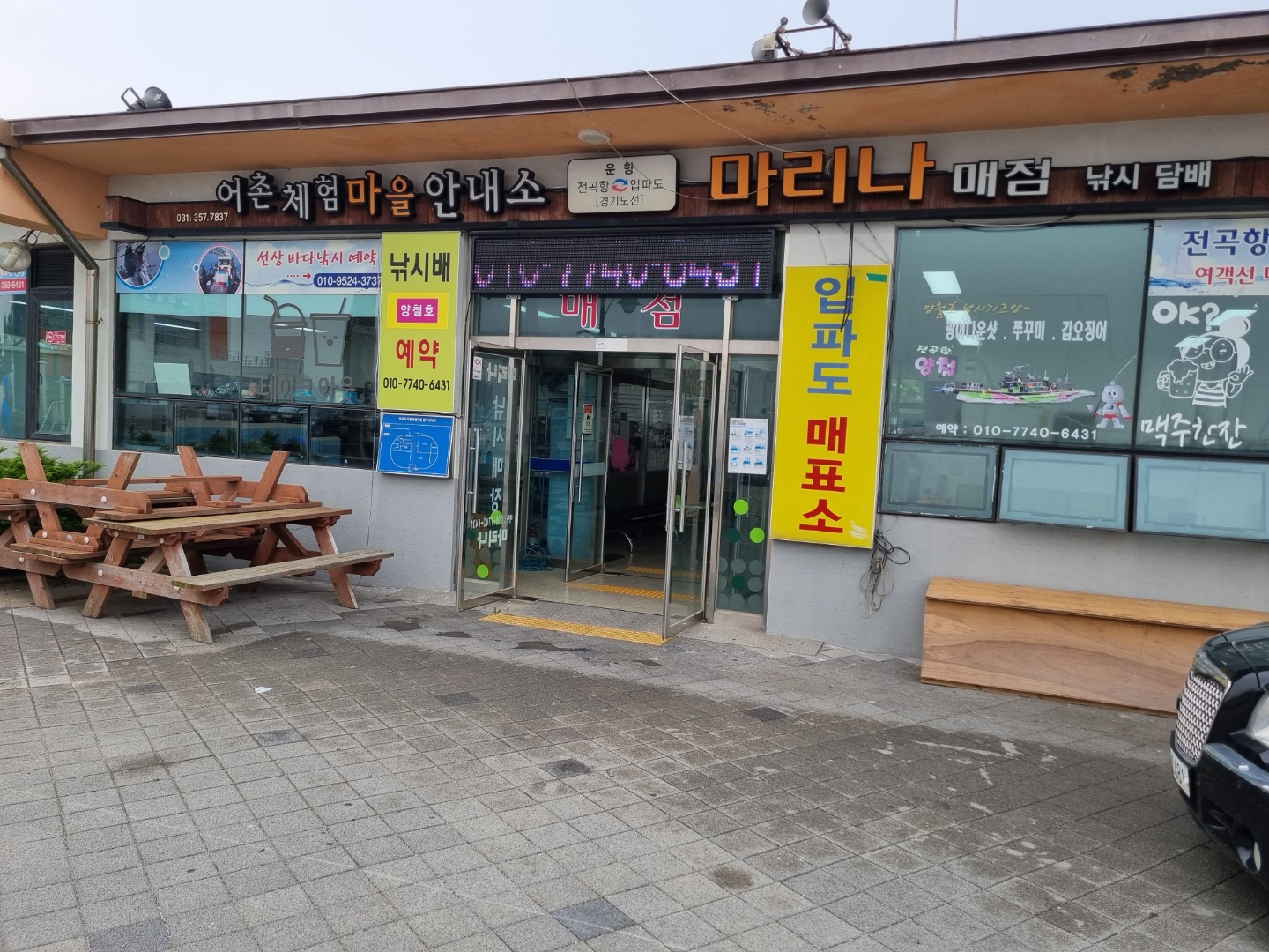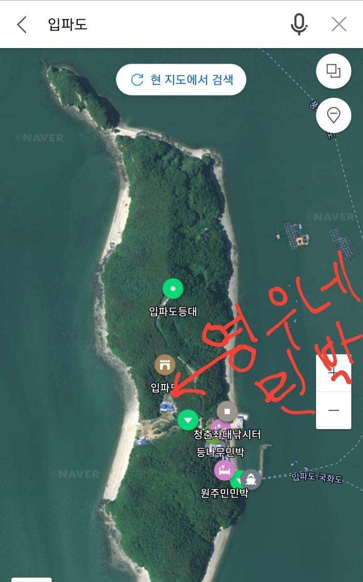 위성 지도를 봤어요. 1박 2일 여행이라 짐이 많아요. 짐을 선착장까지 들고 가야 하기 때문에 선착장에서 제일 가까운 곳에 주차를 하는게 좋아요. 그리고 전곡리 어촌체험마을이라는 건물에서 입파도로 들어가는 표를 팔아요.