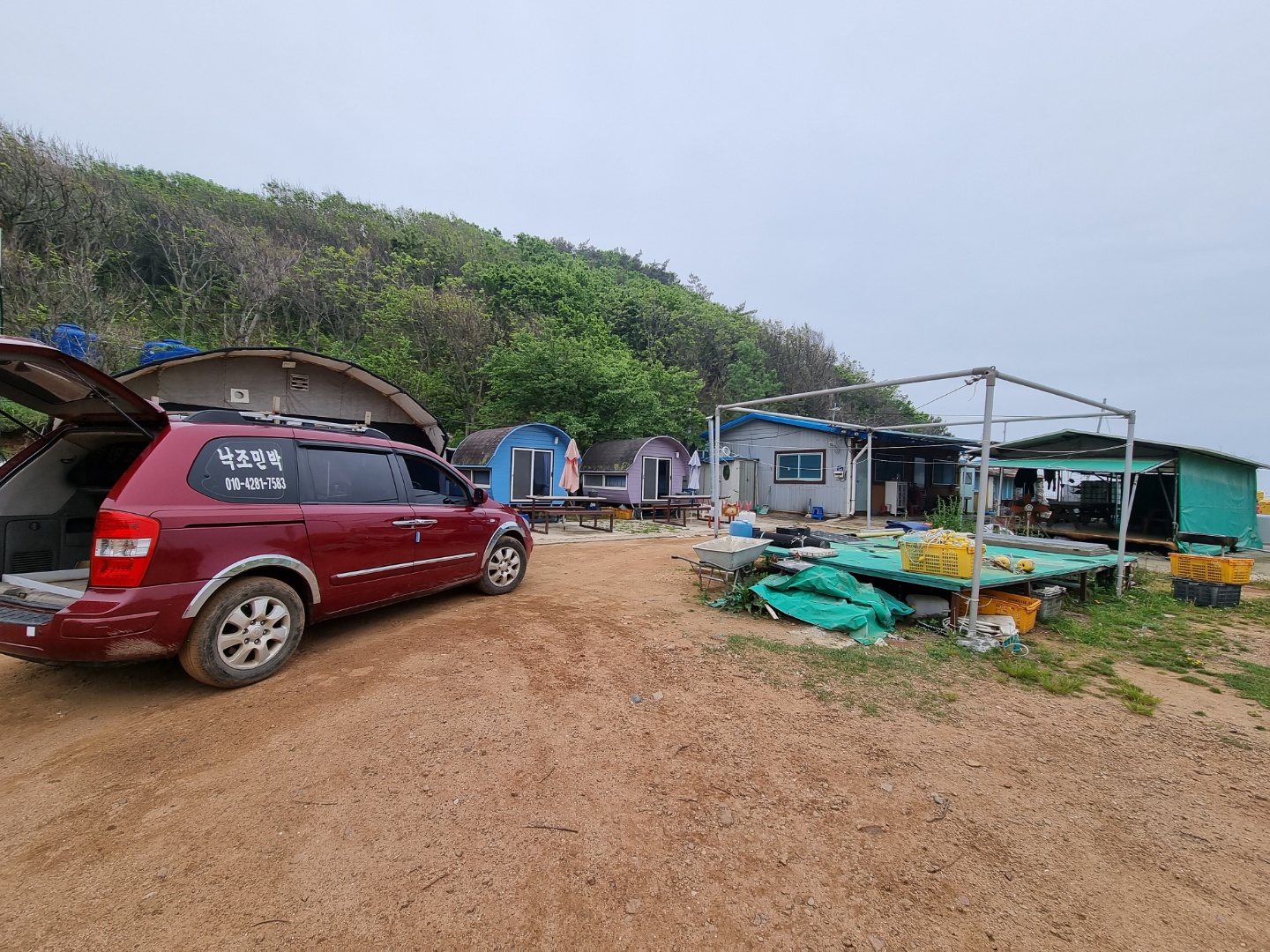 저희가 가야할 곳은 영우네 민박이에요. 산을 넘어가야 영우네 민박이 나와요. 짐 때문에 주인아주머니께서 차를 갖고 마중을 나와 주세요. 차가 2대가 있어요. 한대는 이모님이 짐을 싣고 운전하고 가시고 "한 명은 운전하고 와~"라는 말을 남기고 쿨하게 떠나셨어요. 셀프 운전해요.