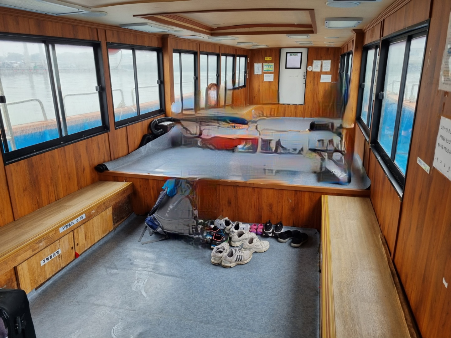 경기도선 내부는 의자도 있고 신발을 벗고 앉을 수도 있어요. 파도 때문에 신나는 디스코 팡팡이 시작되요. 손님이 없어서 저희 가족만 탔어요. 배를 빌린듯한 느낌이에요.