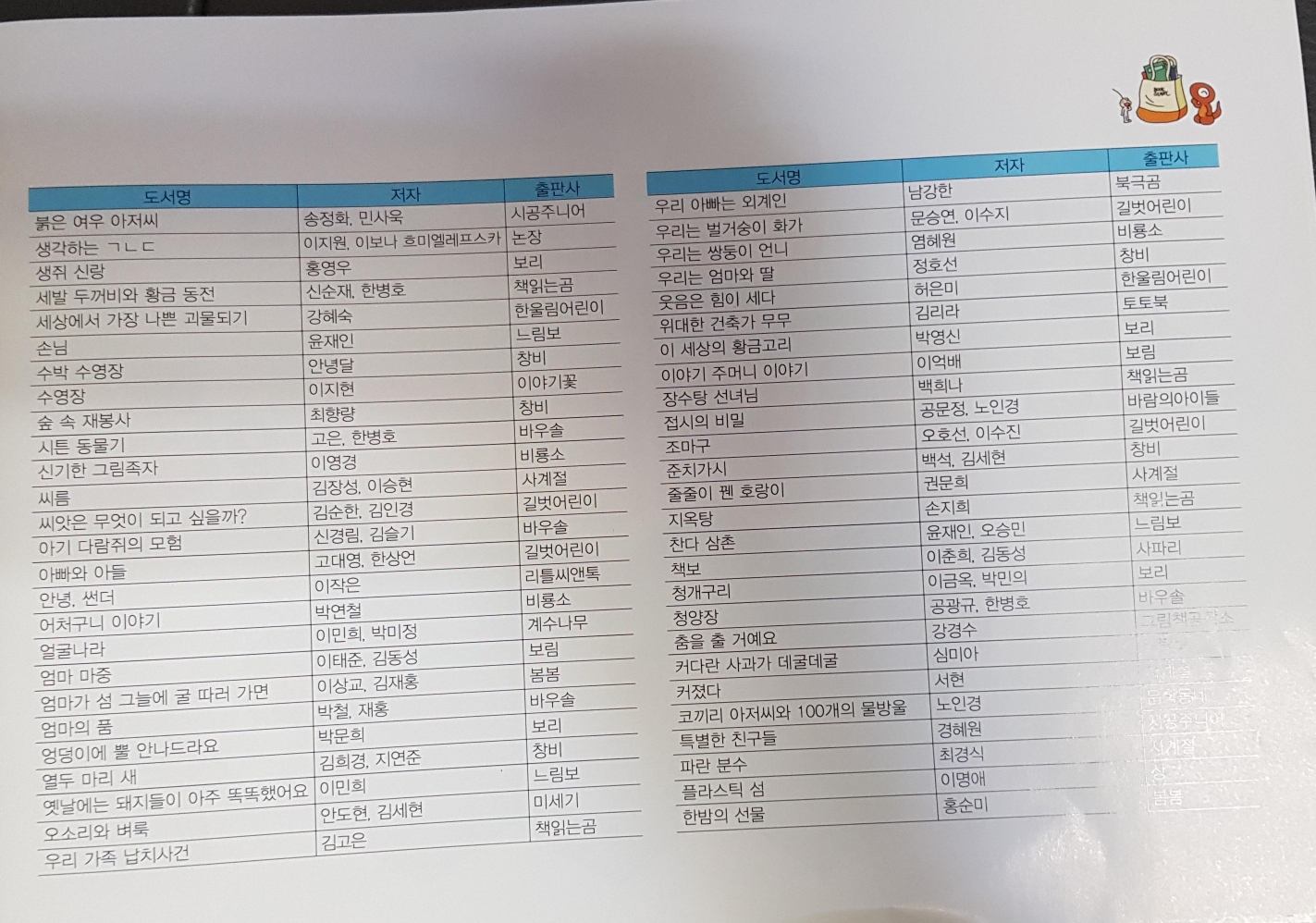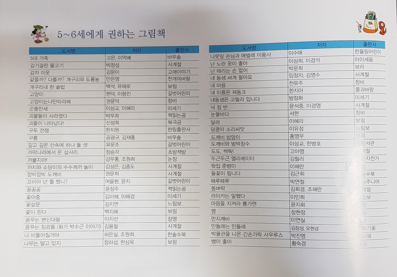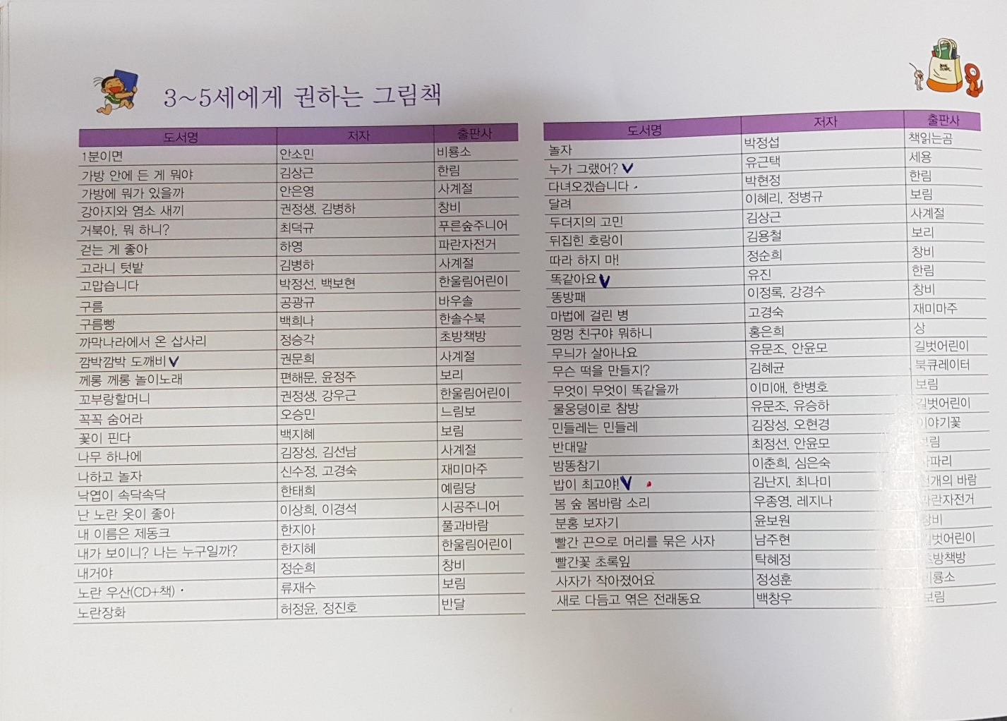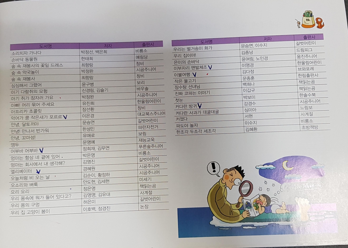 아동 권장 도서 목록을 만들어서 아이가 읽은 책은 체크해요. 아이가 연령에 맞는 권장 도서는 다 읽을 수 있도록 해야겠어요.