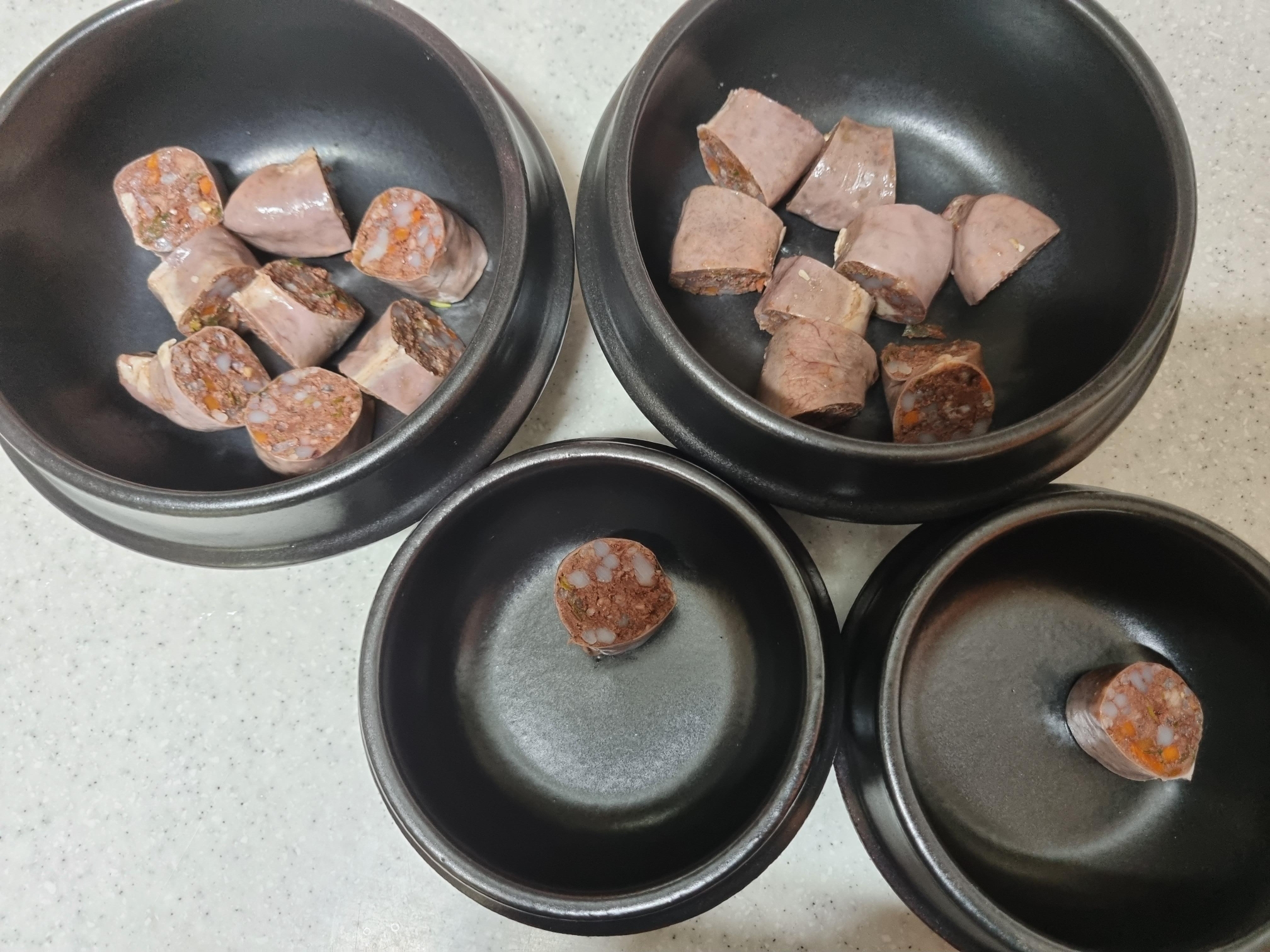순대를 준비해요. 순대는 당면 순대보다 고기순대 또는 피순대를 넣어야 식당에서 파는 순대국밥 맛이 나요.